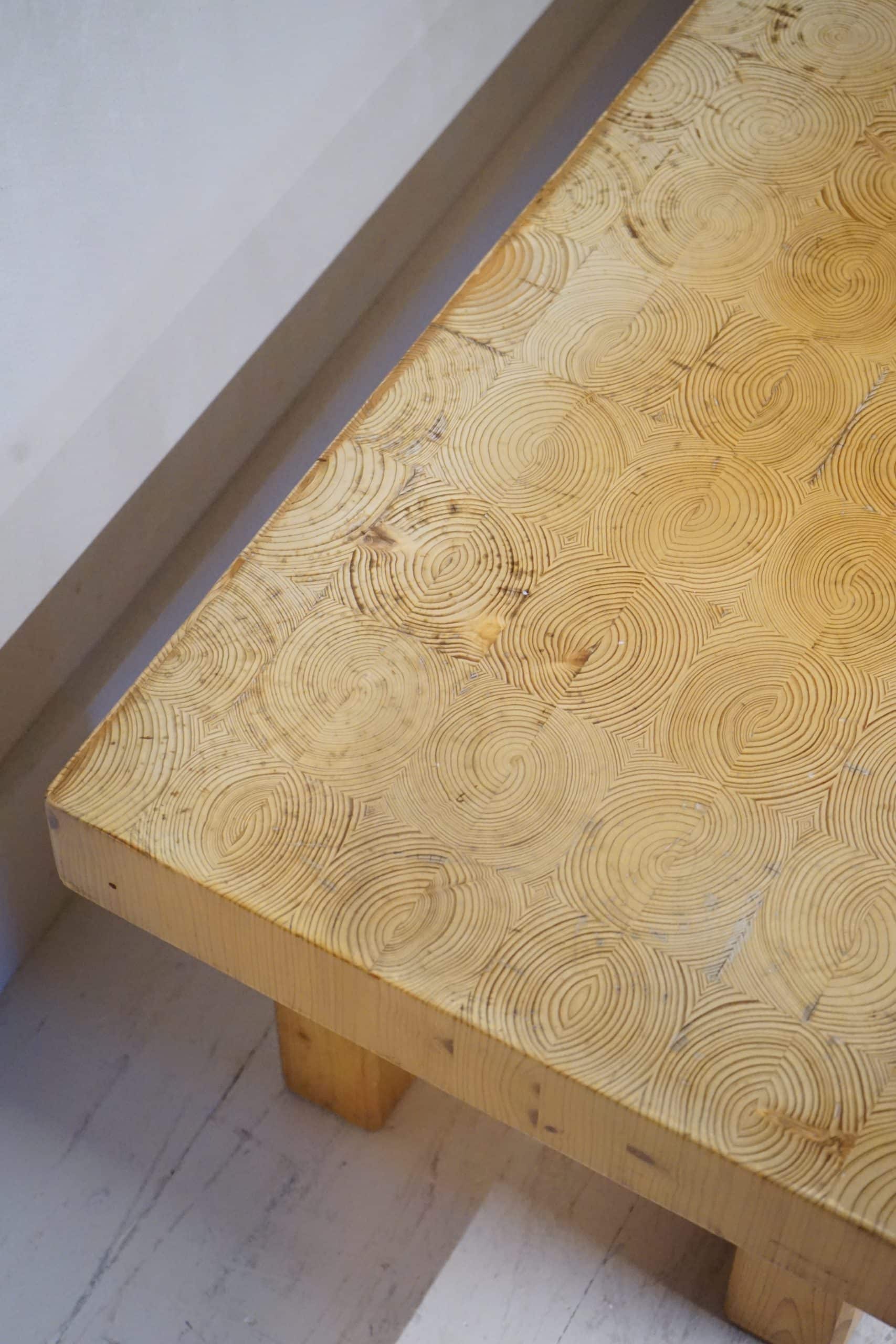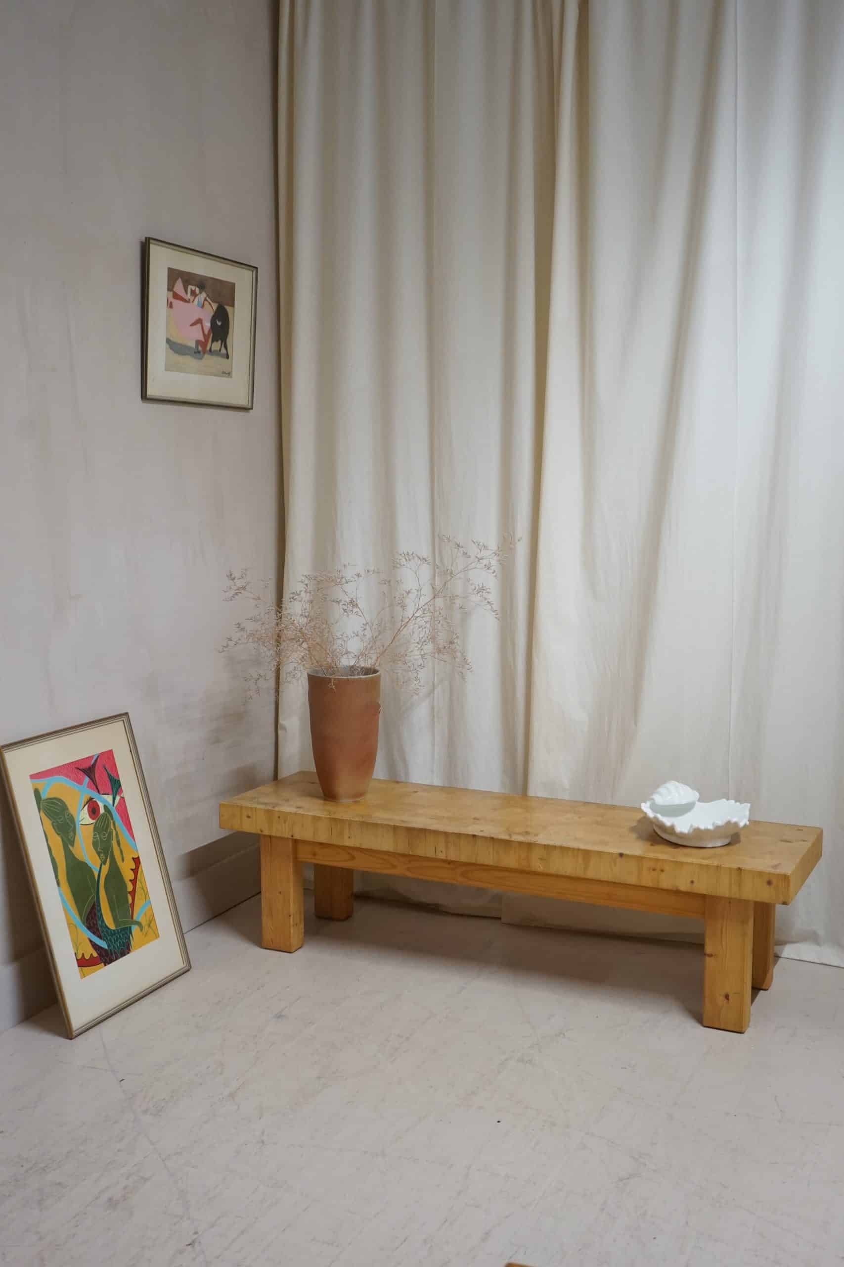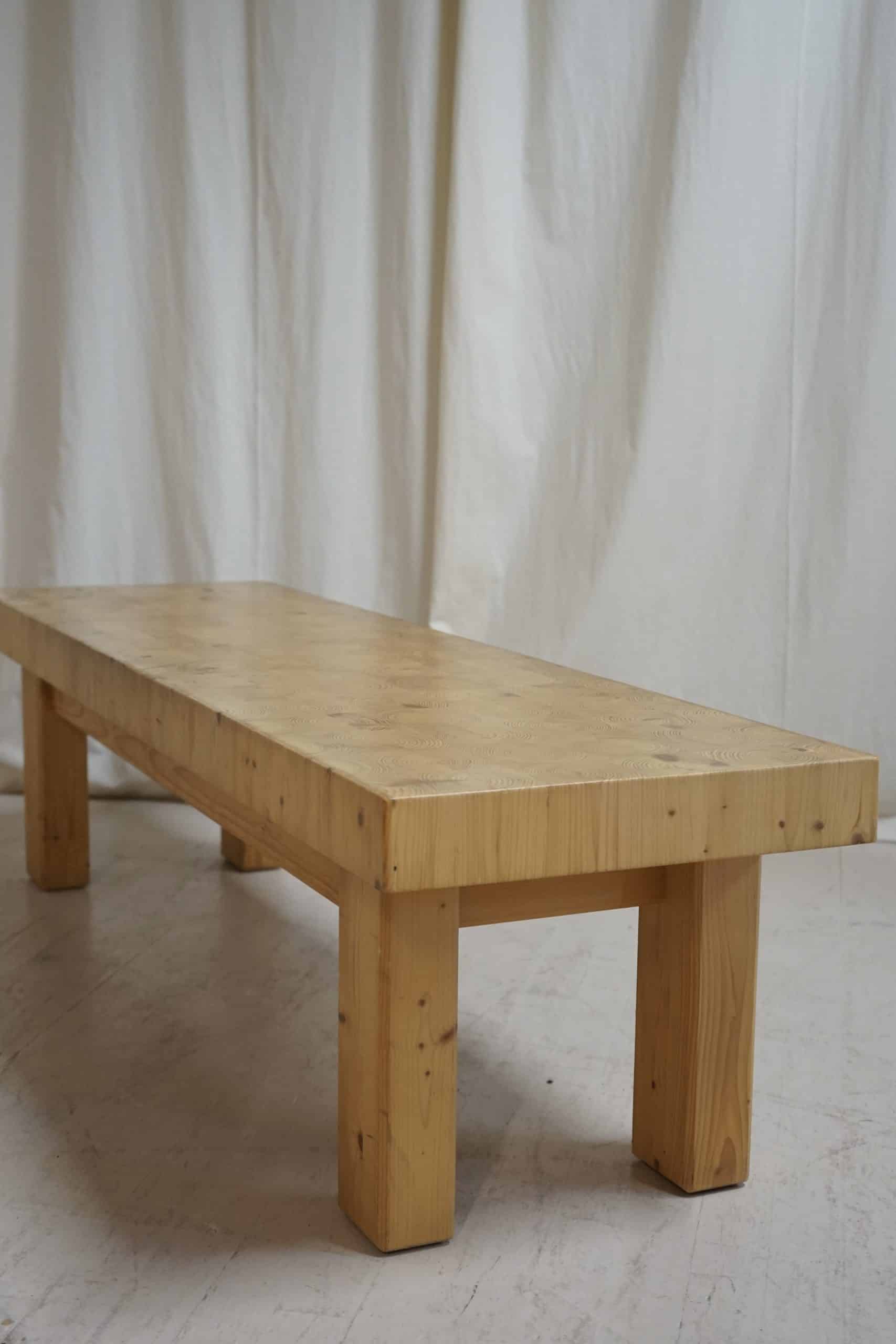 Bänk i massiv stavlimmad furu, 1960-/70-tal.
