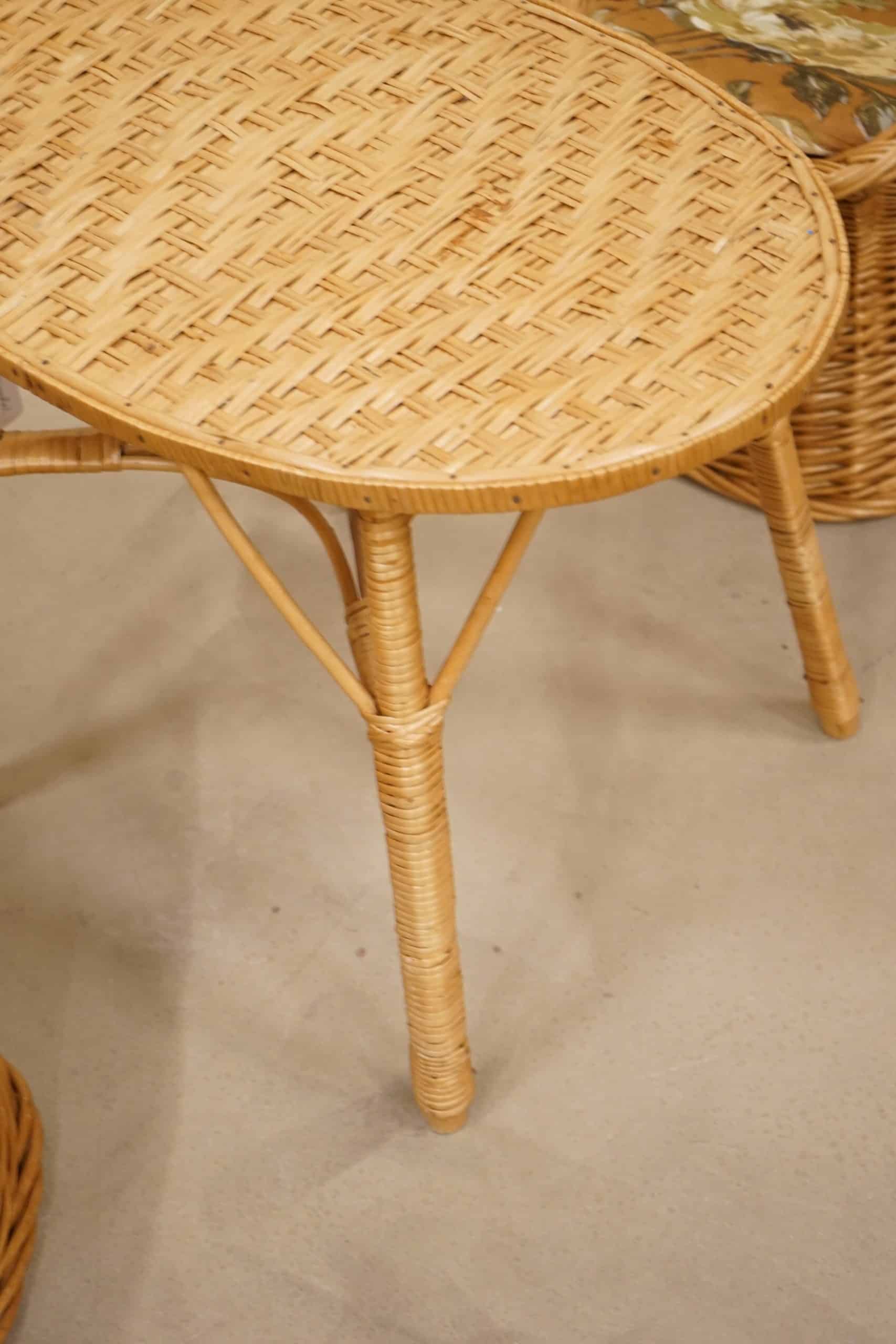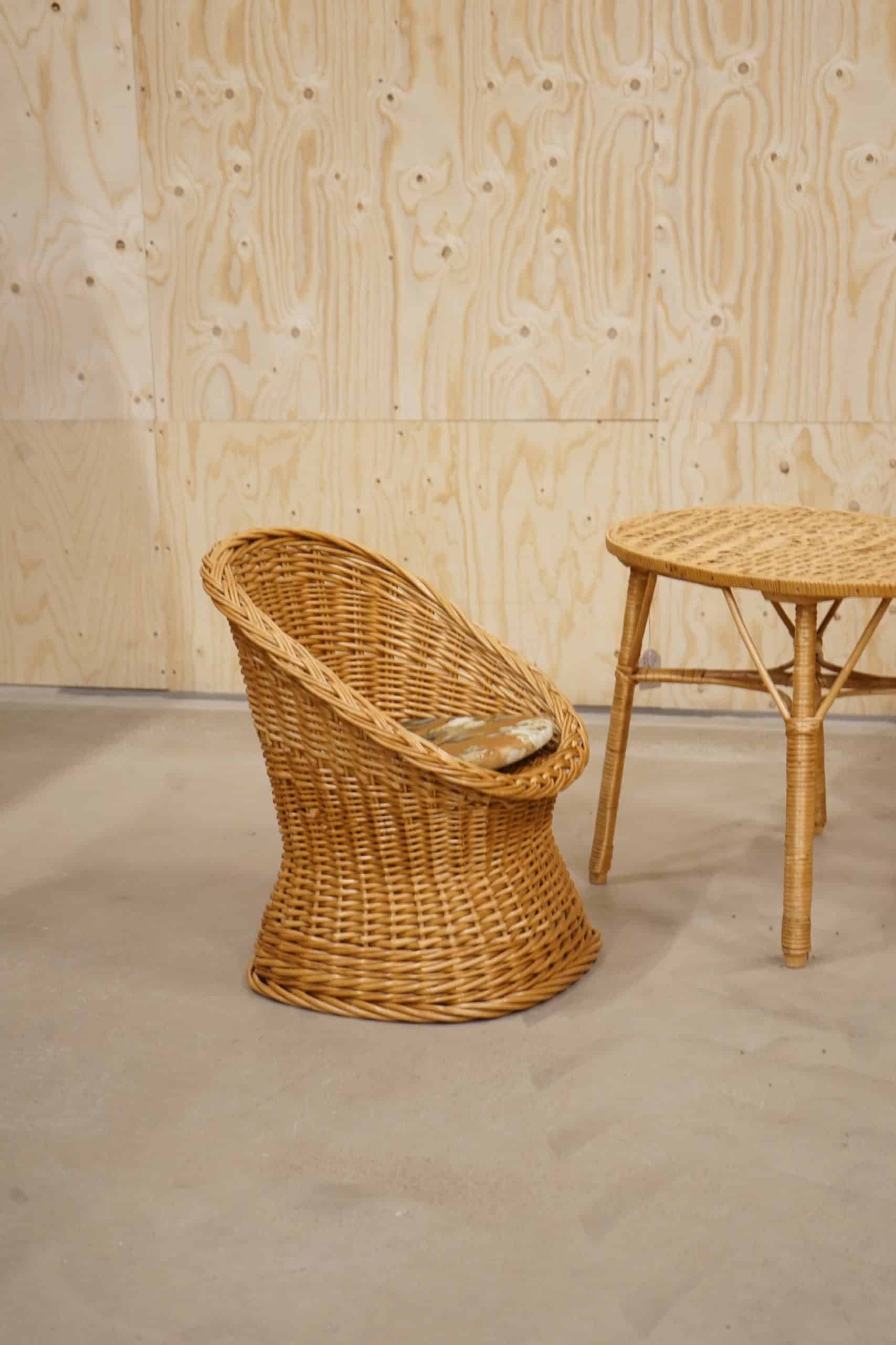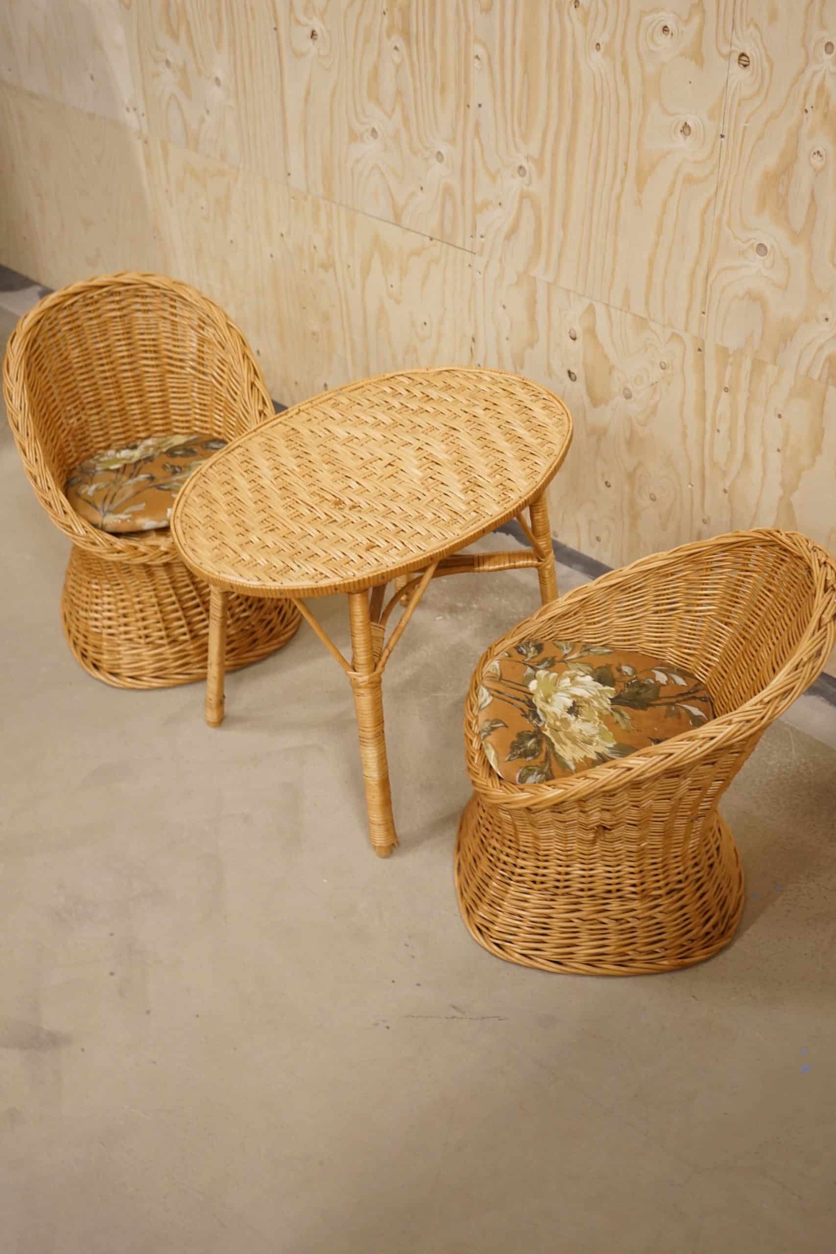 En ovanlig barnmöbelgrupp i rotting.