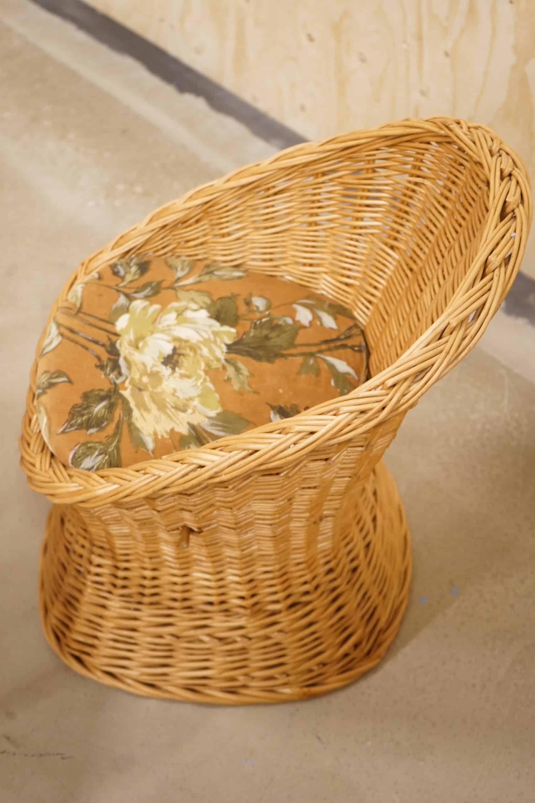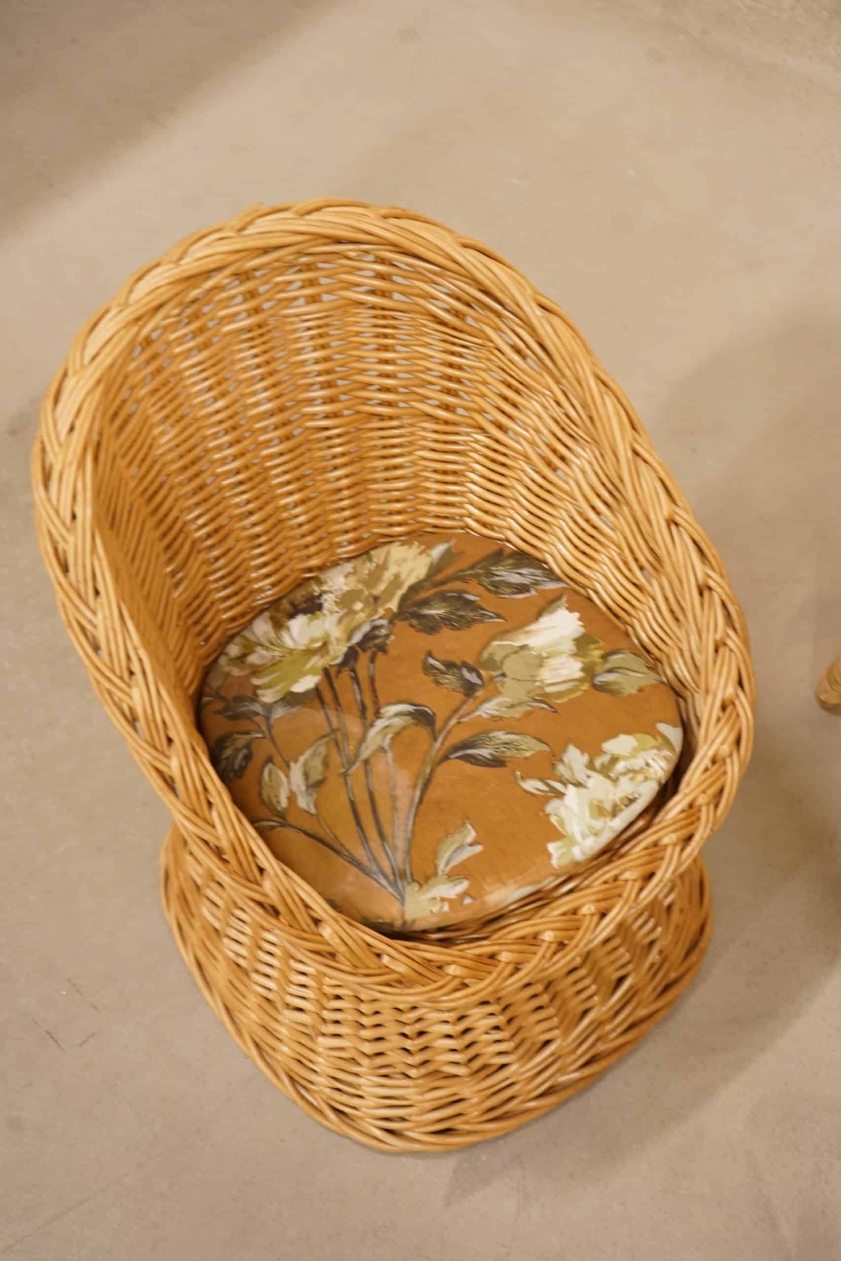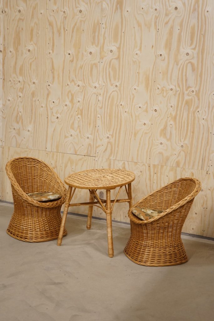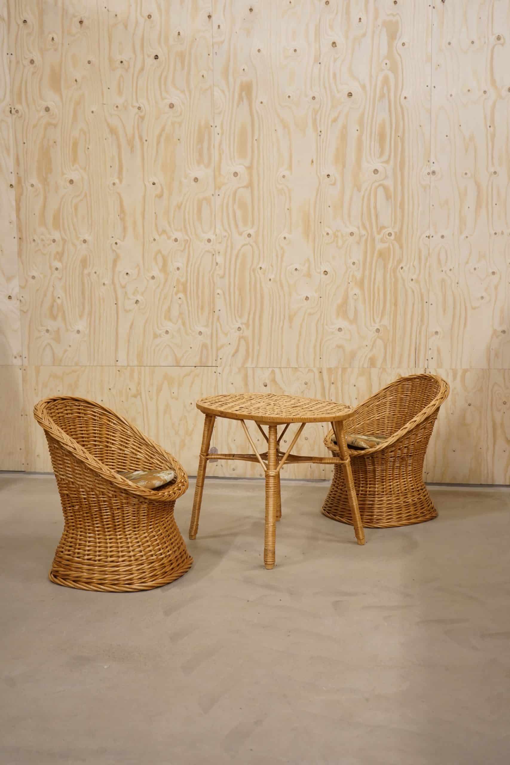 En ovanlig barnmöbelgrupp i rotting.
