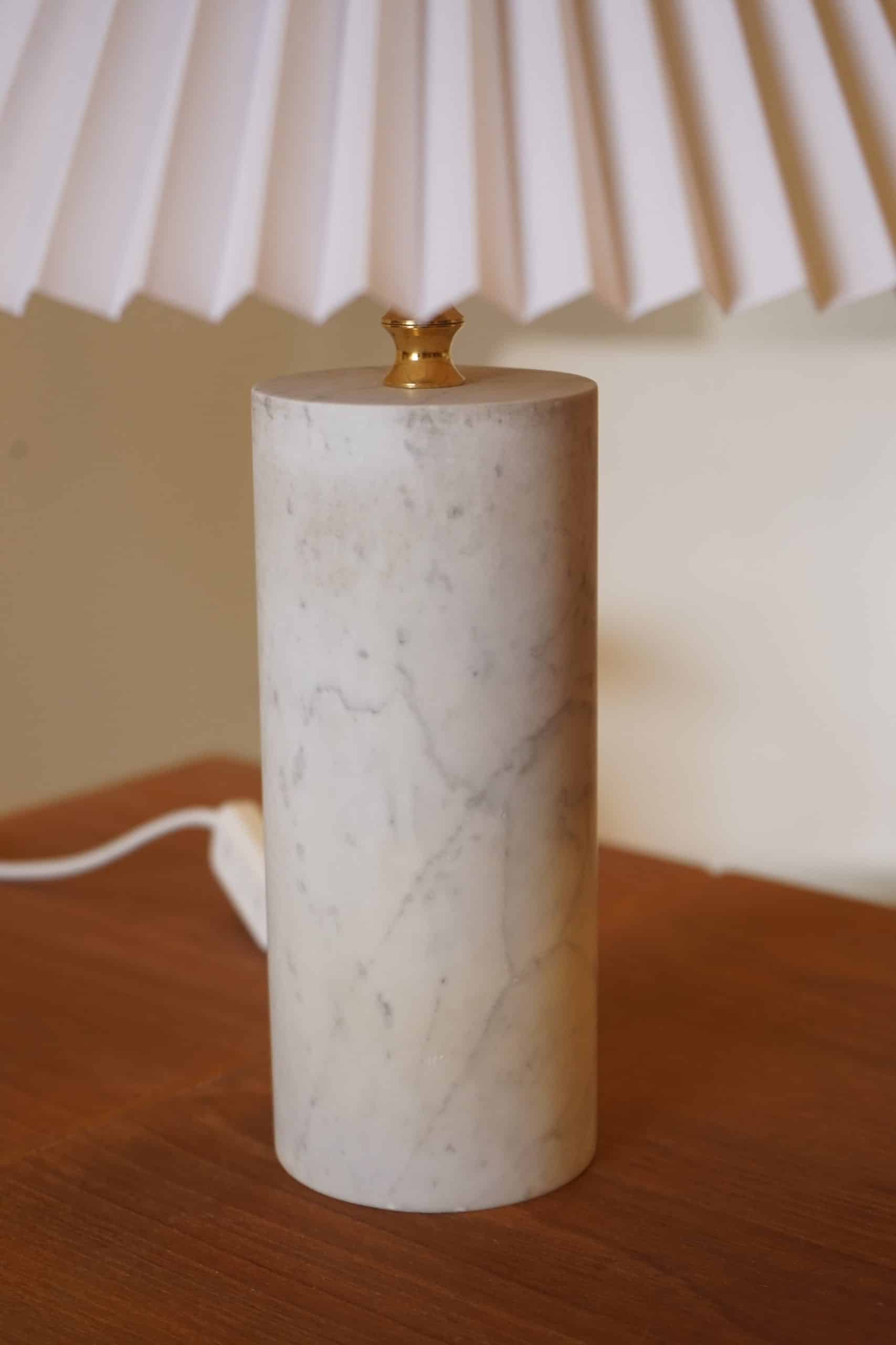 Cylinderformad bordslampa i marmor.
