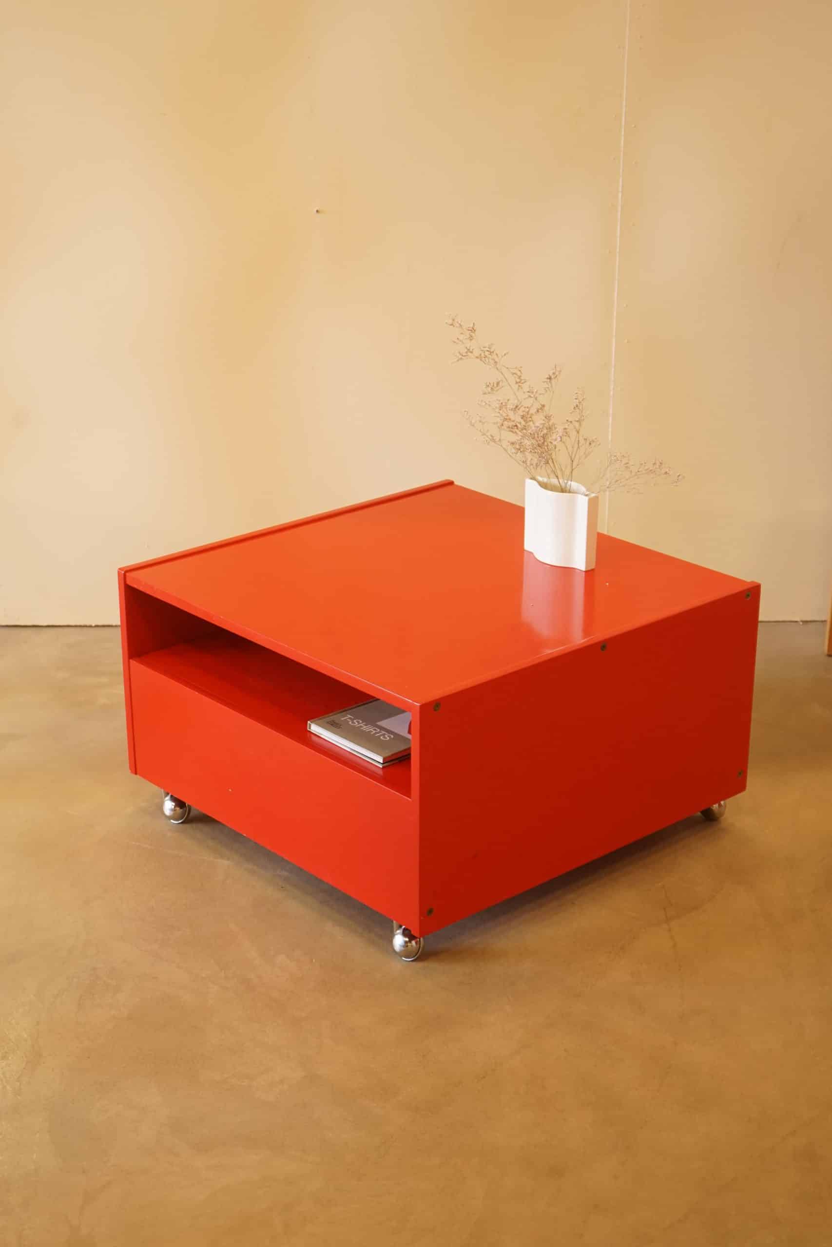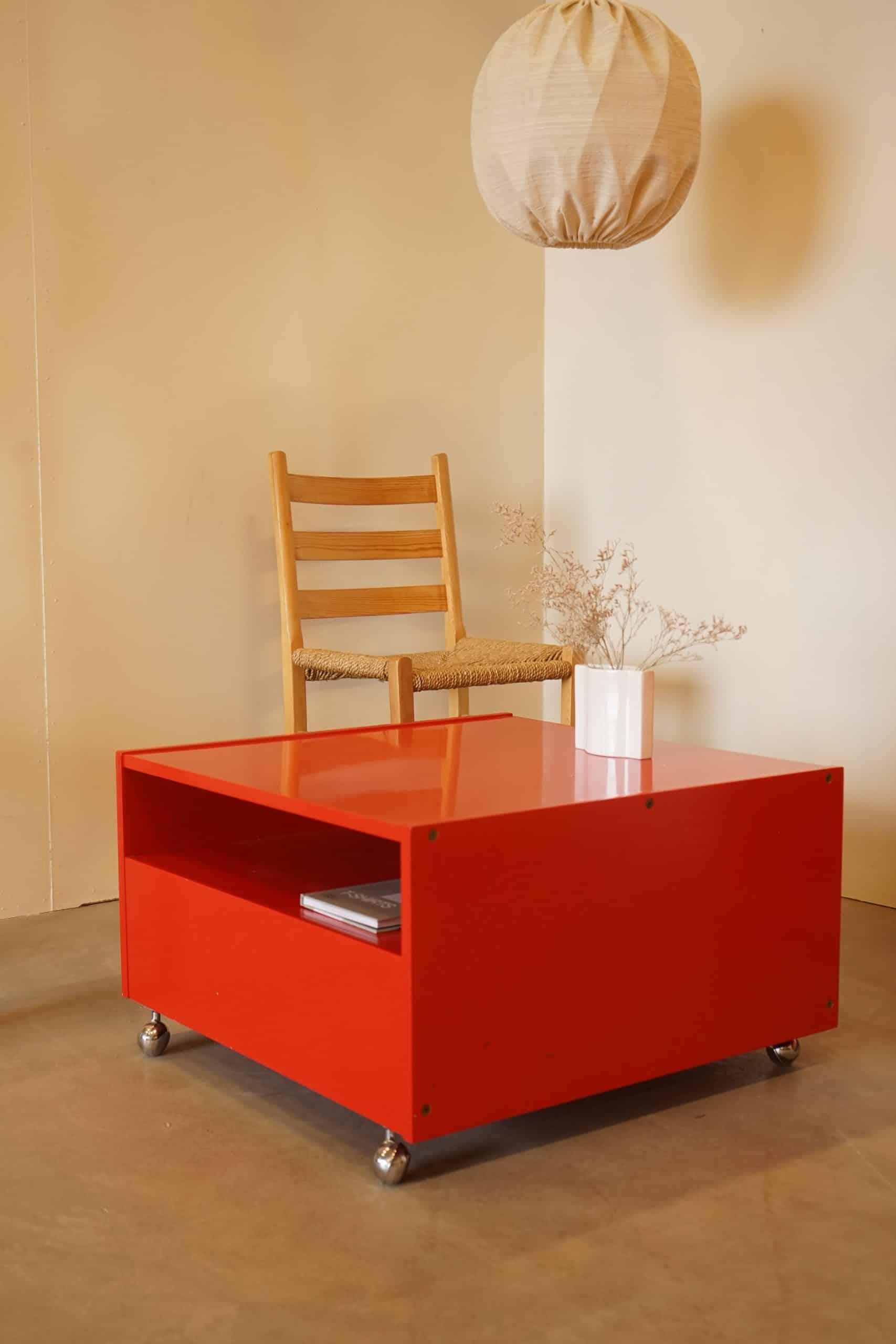 Lackerat rött. På hjul.