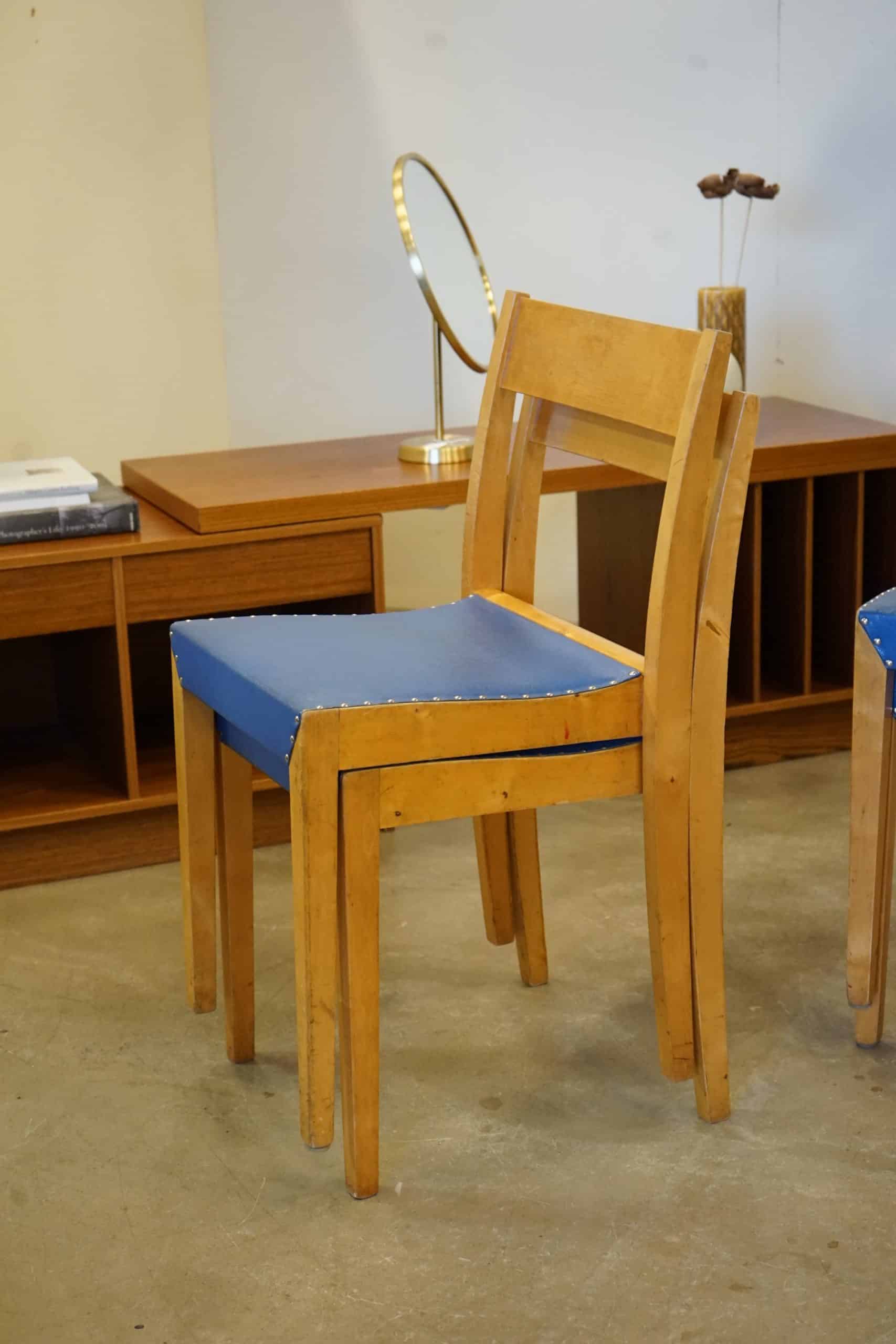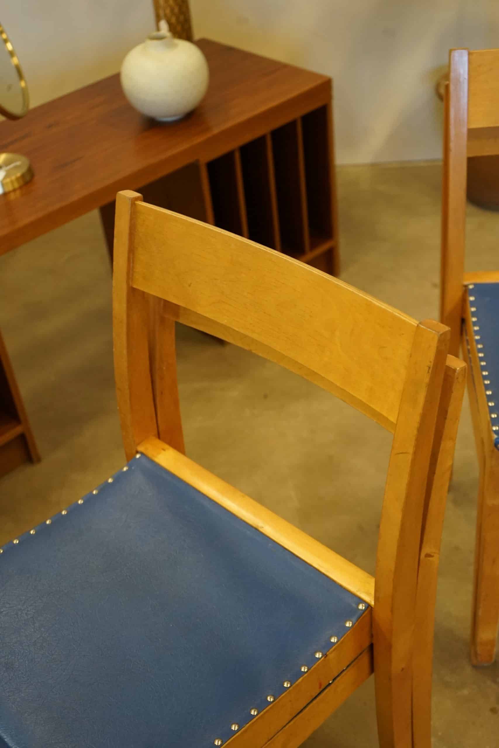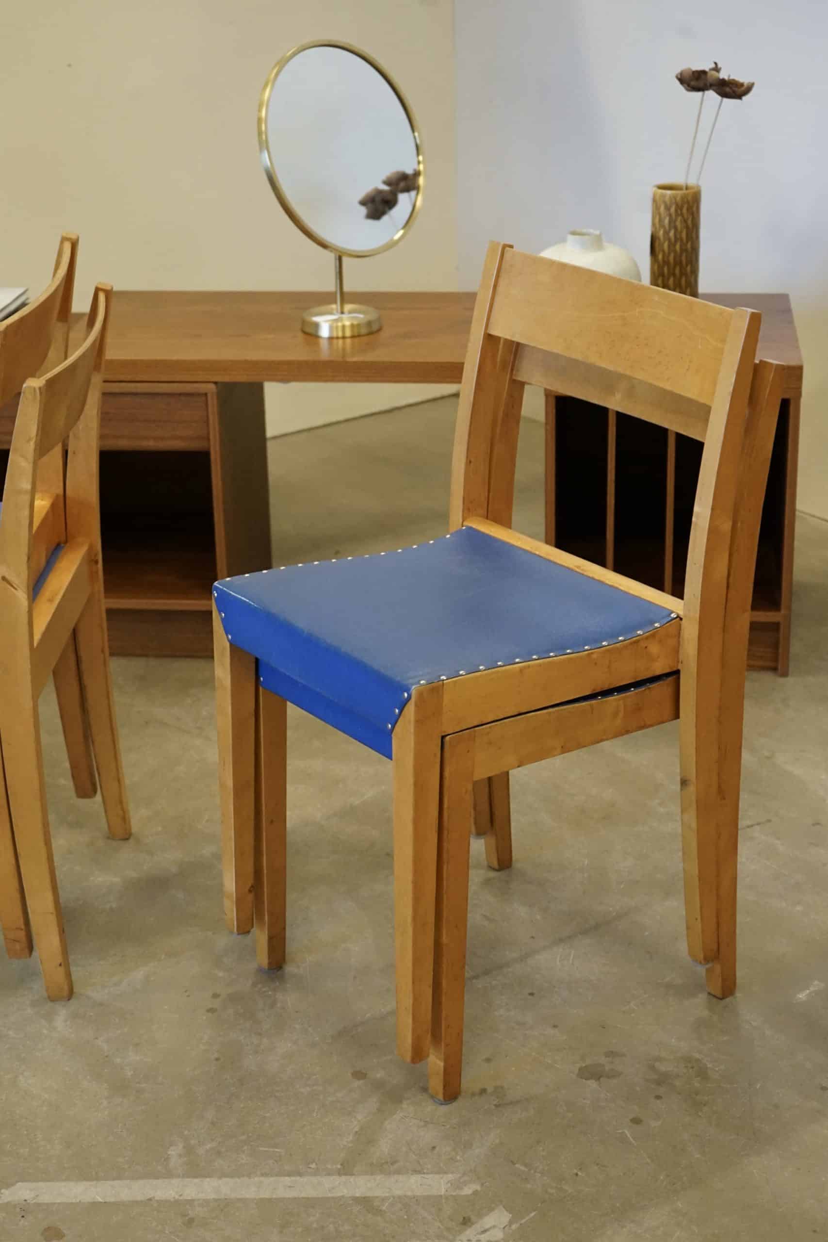 Fyra stapelbara stolar i björk.