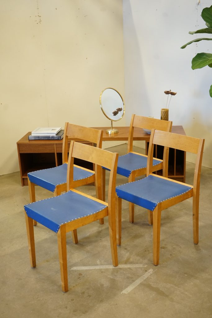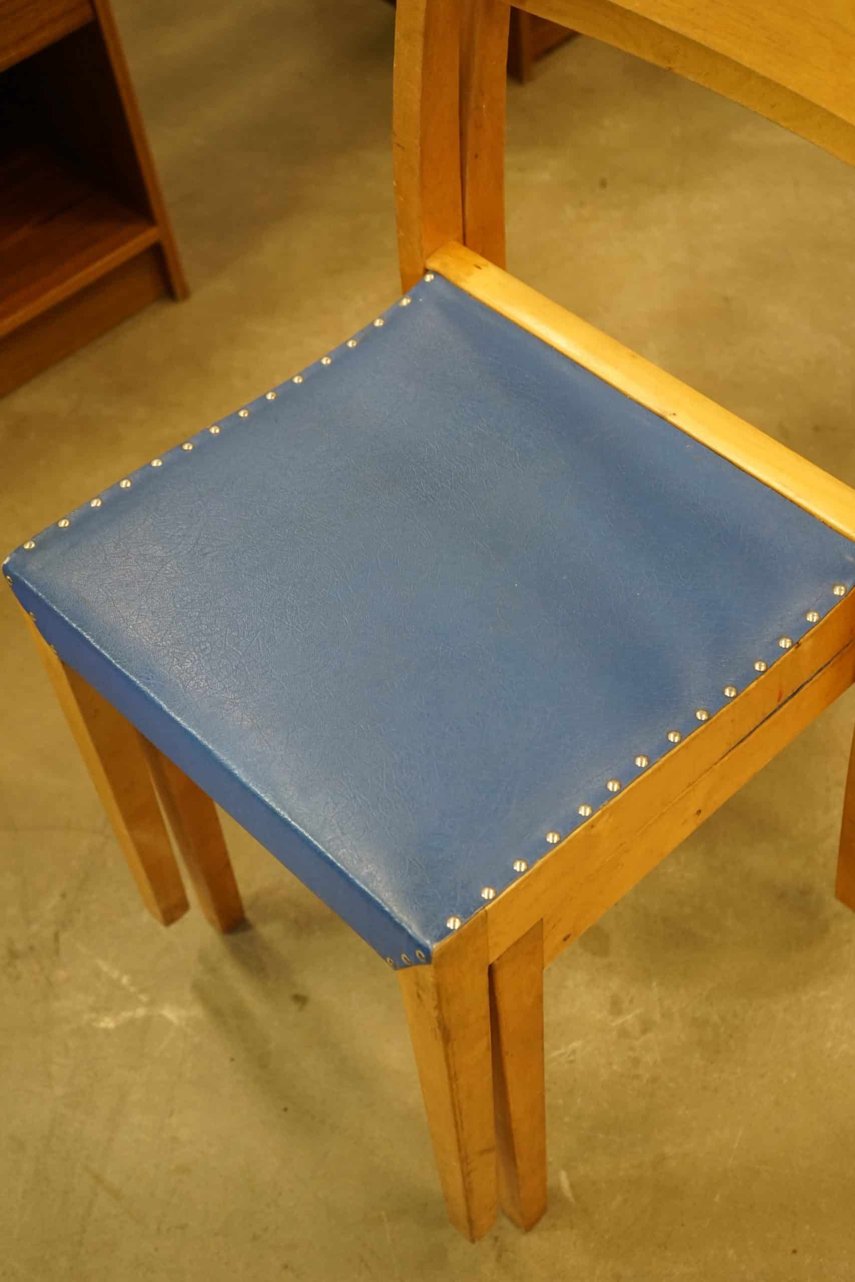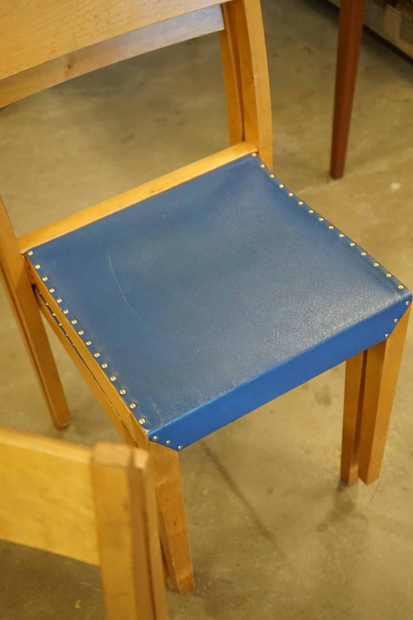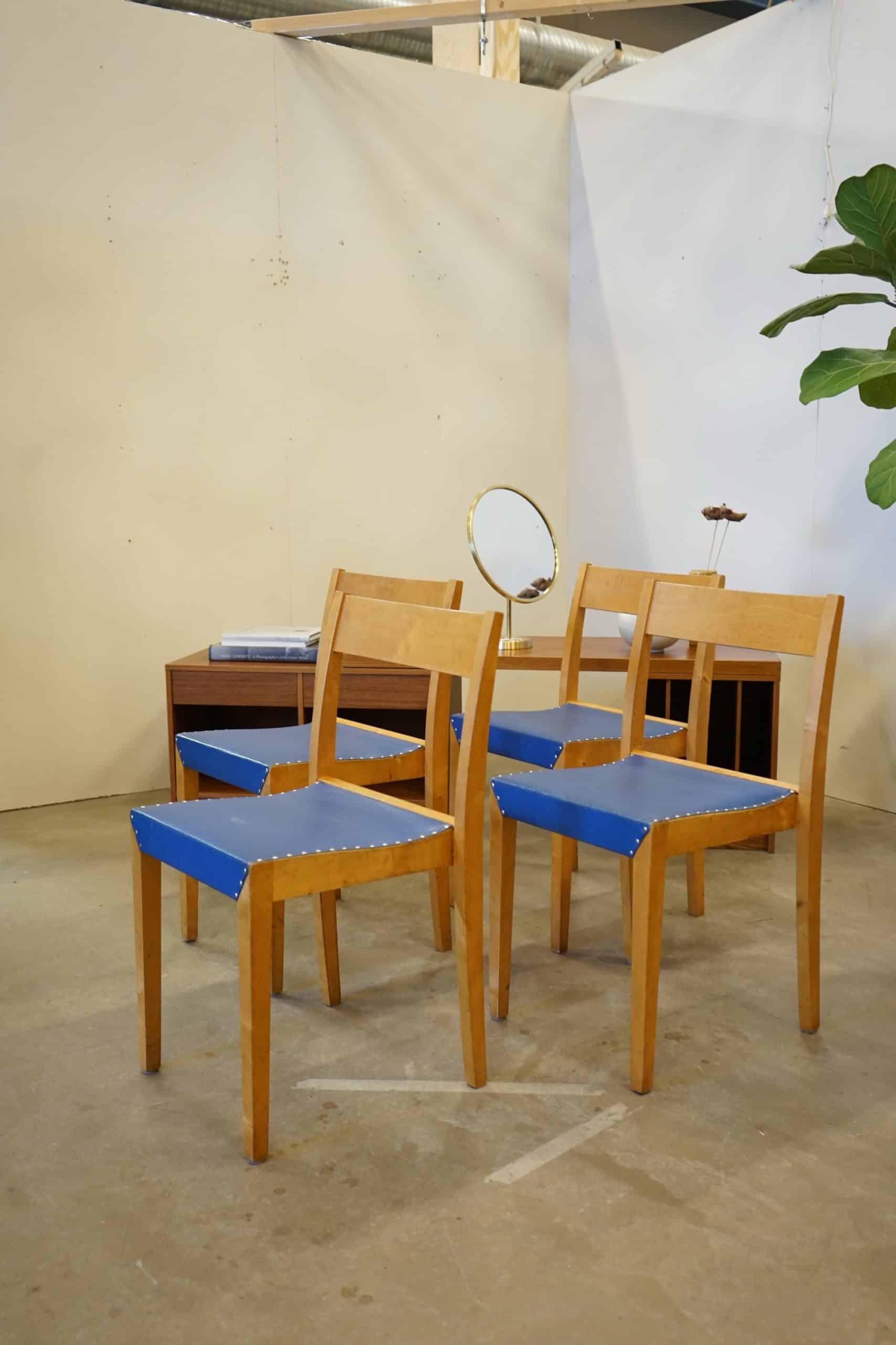 Fyra stapelbara stolar i björk.