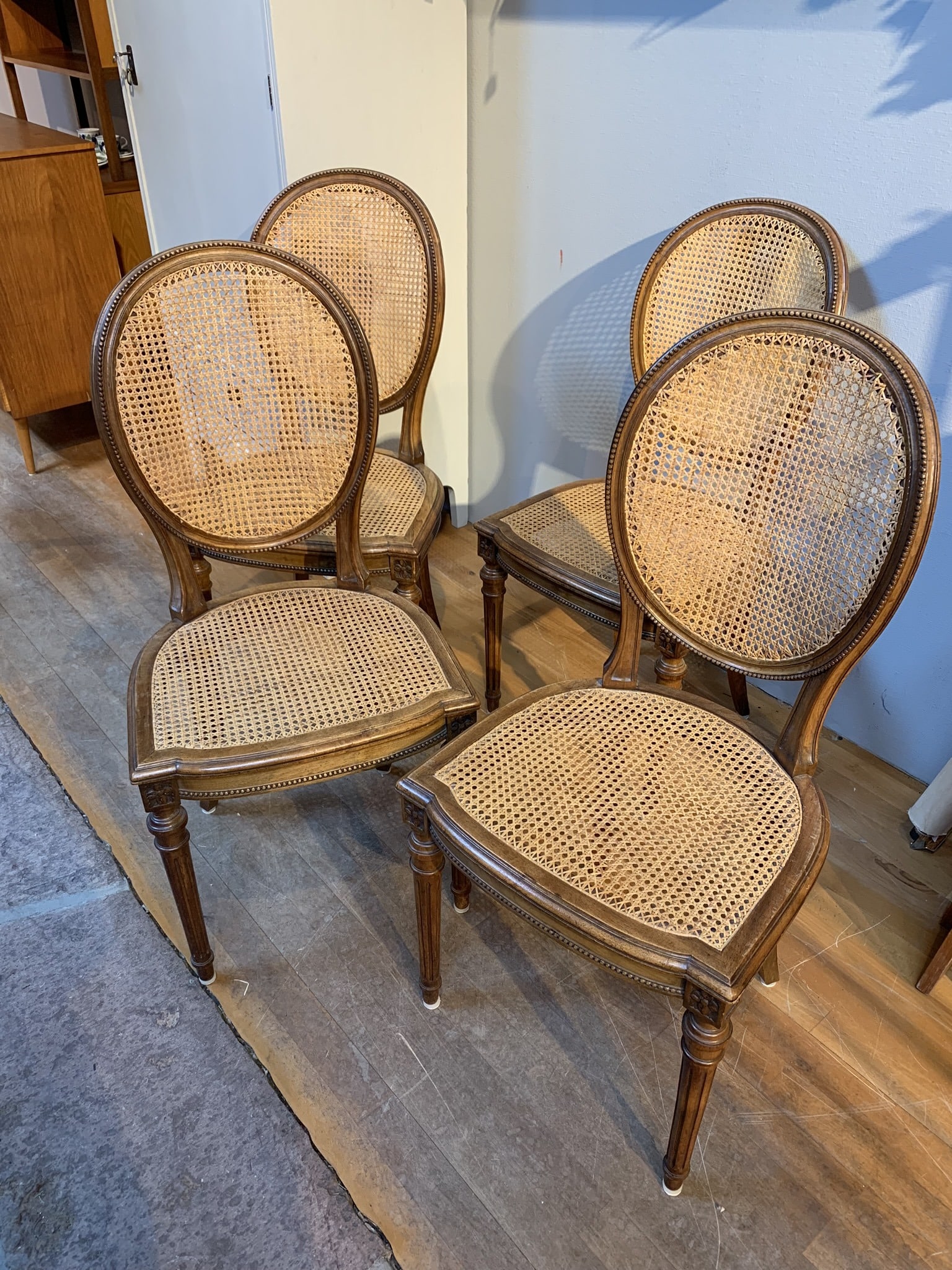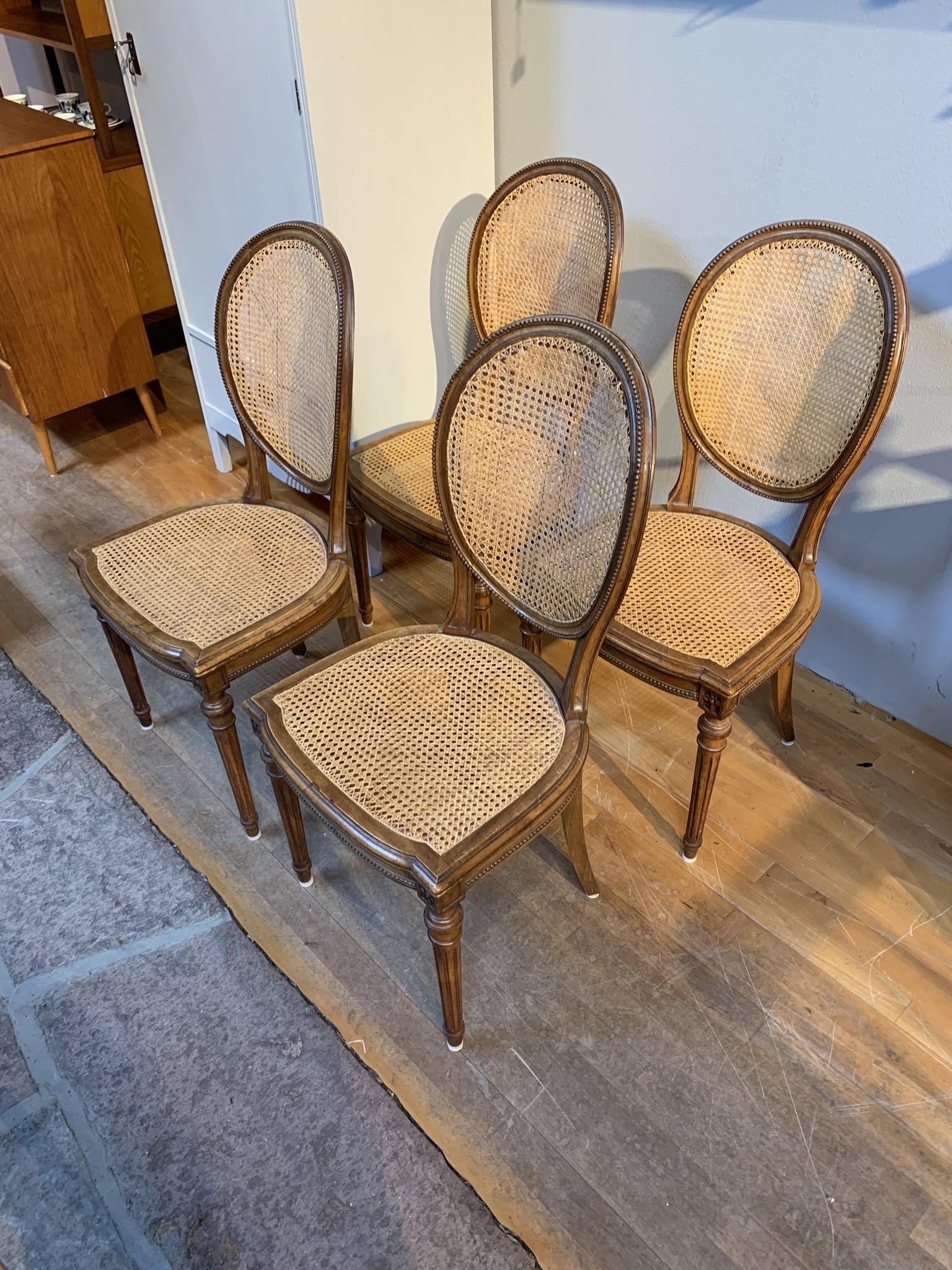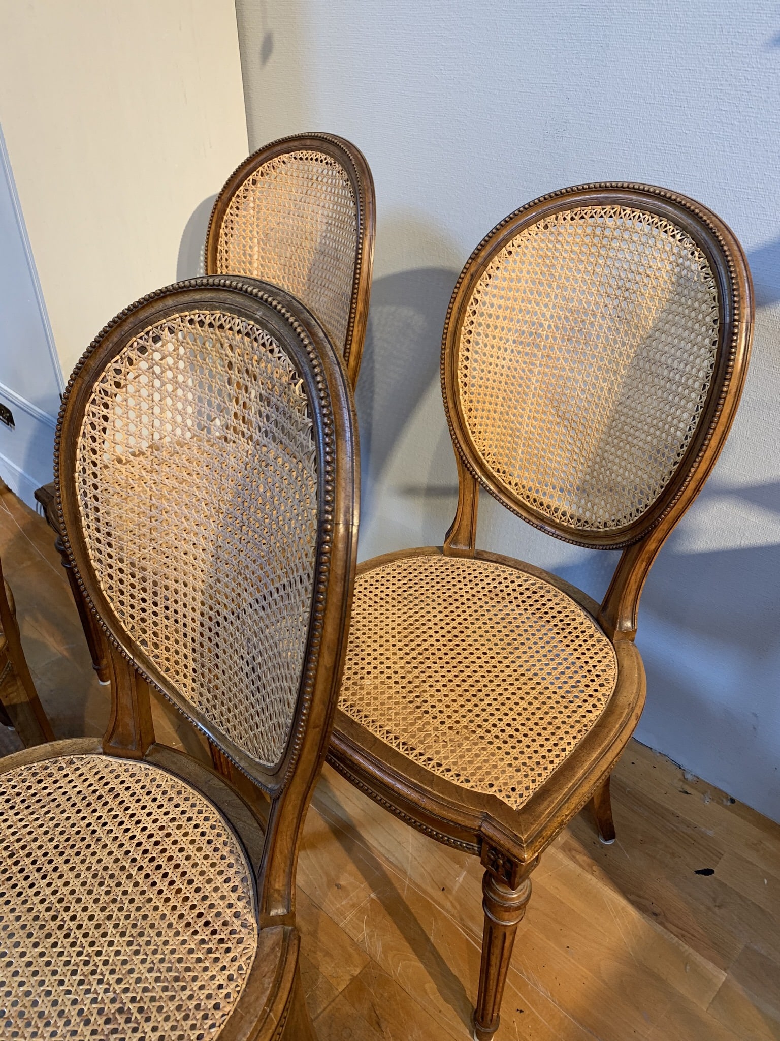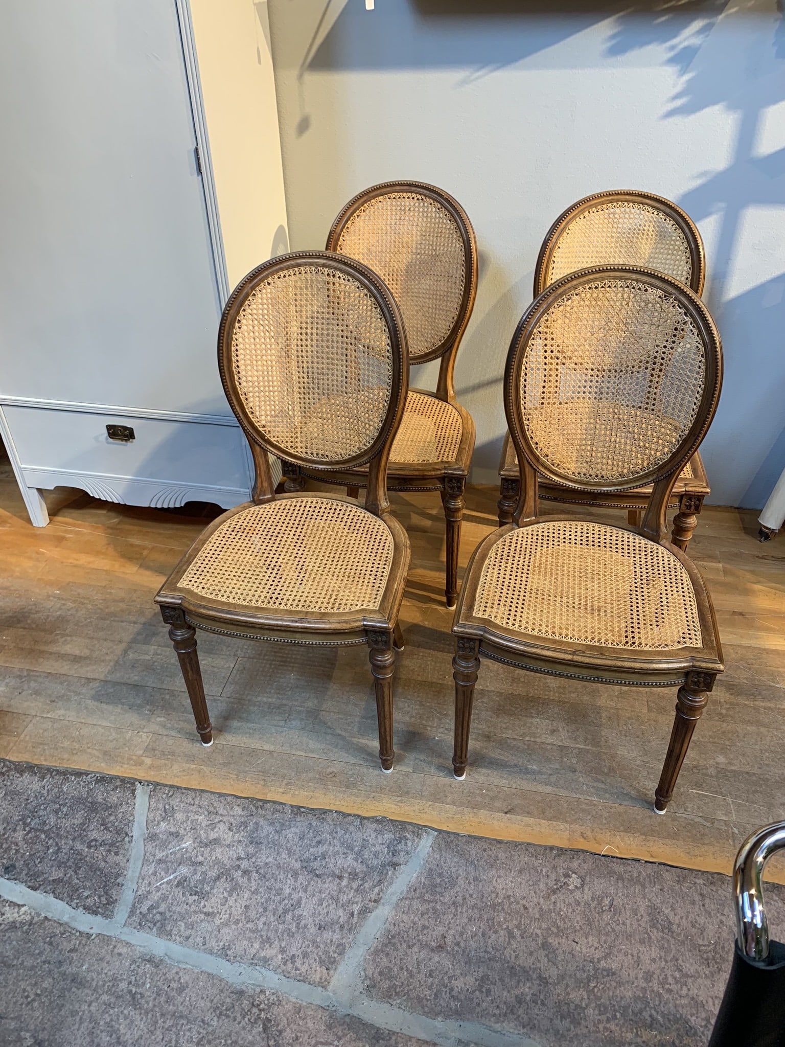 Fyra stolar med flätad rotting, 1900-talets första hälft.