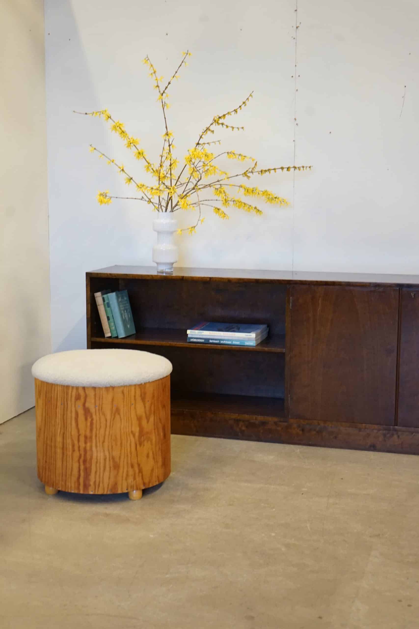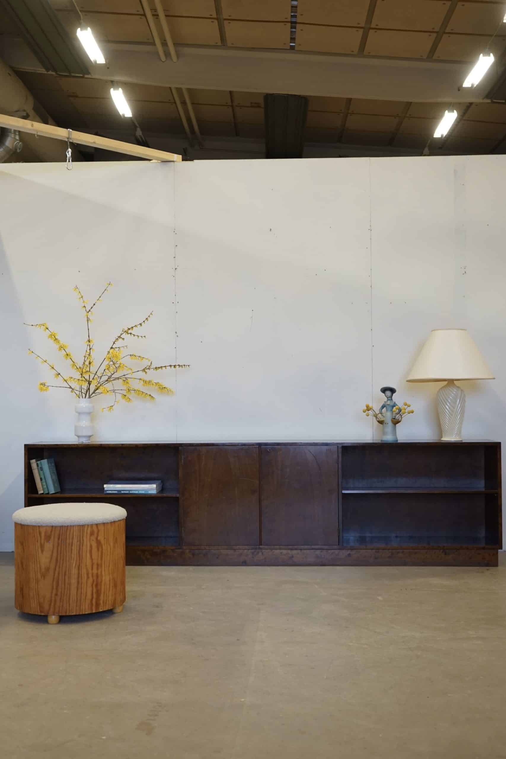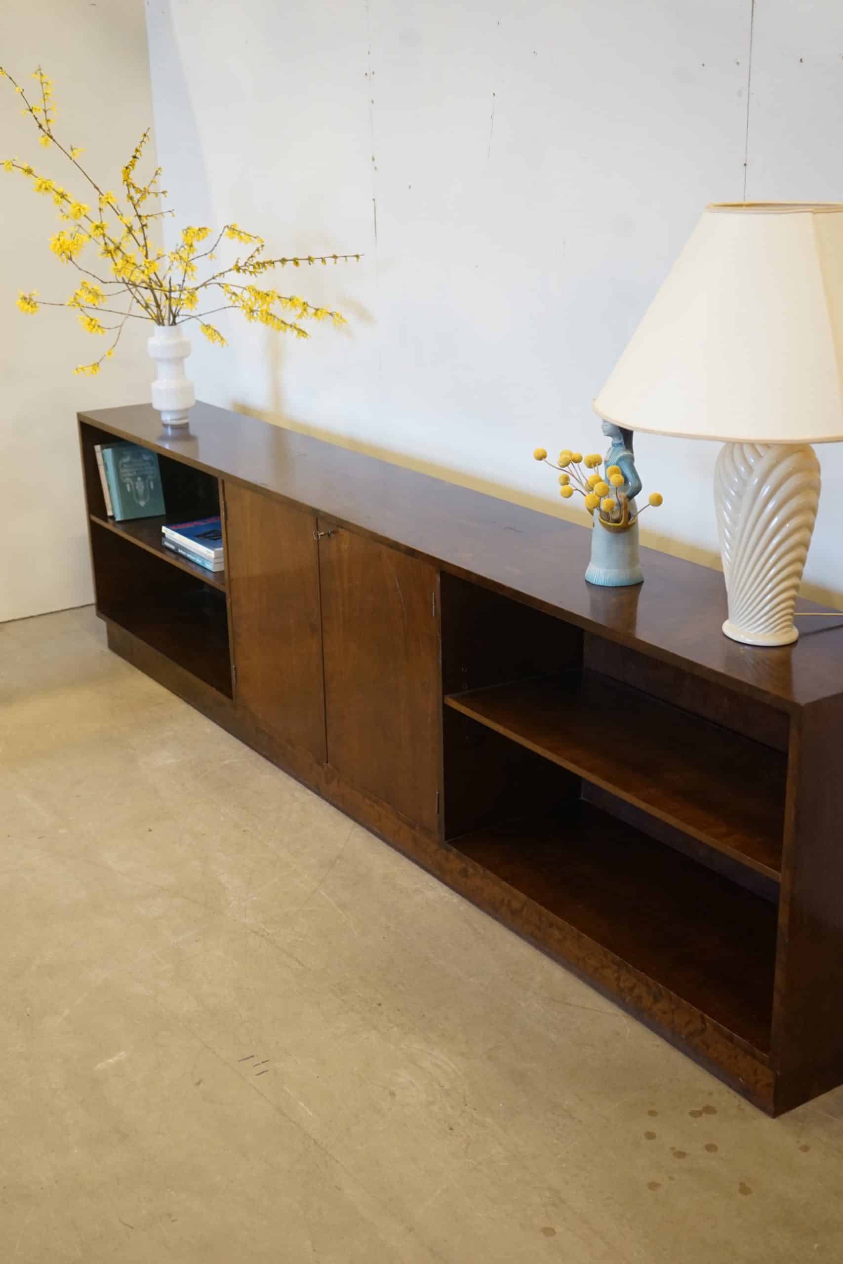 Lång bokhylla i bonad björk, Funkis, 1930-/40-tal.