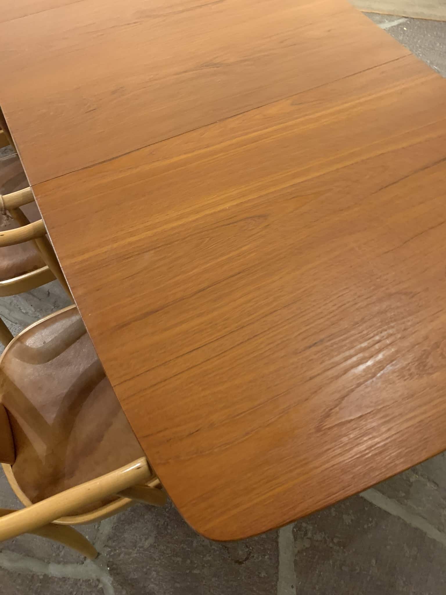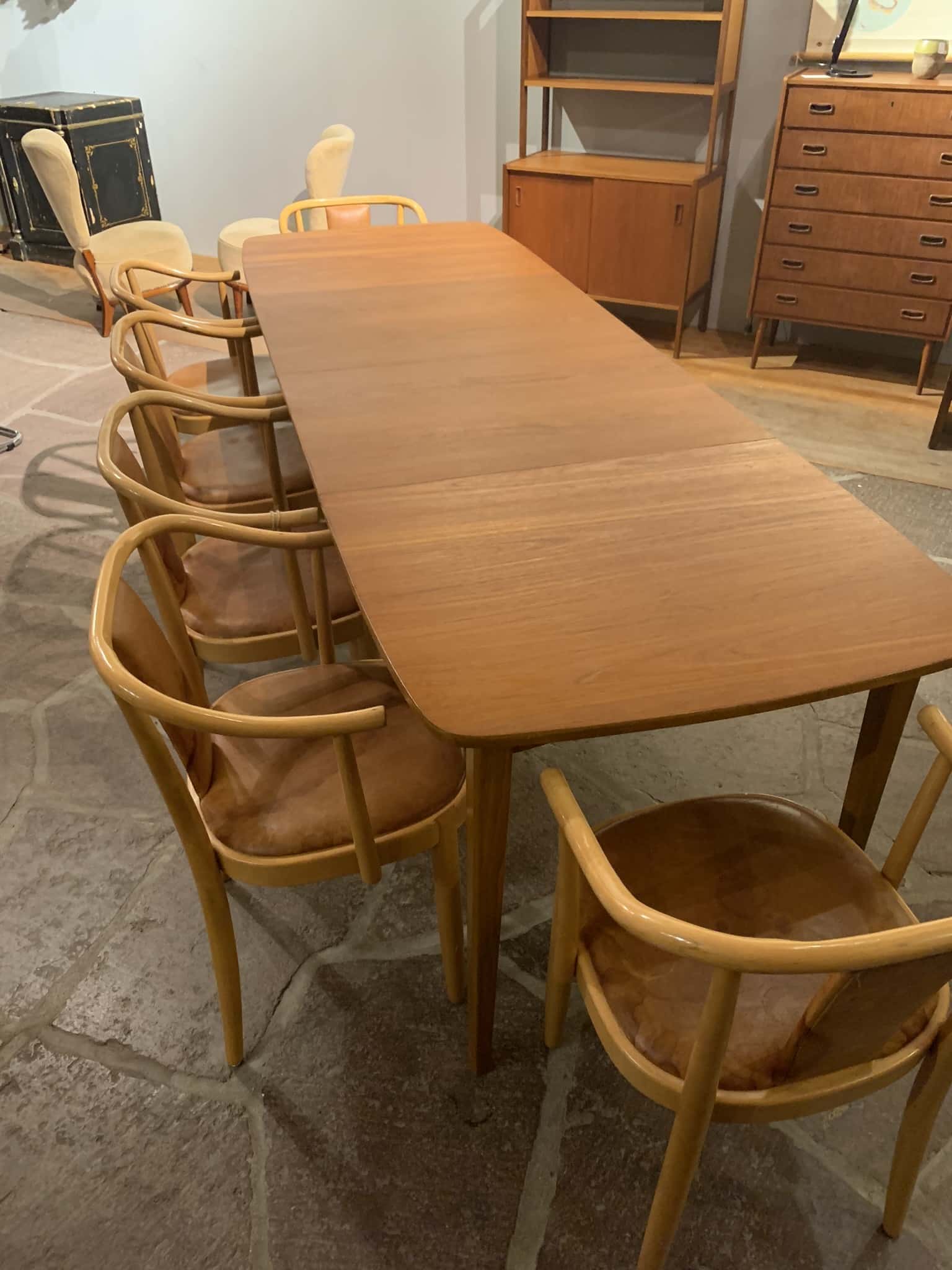 Matbord i teak med två iläggsskivor, 1900-talets mitt.