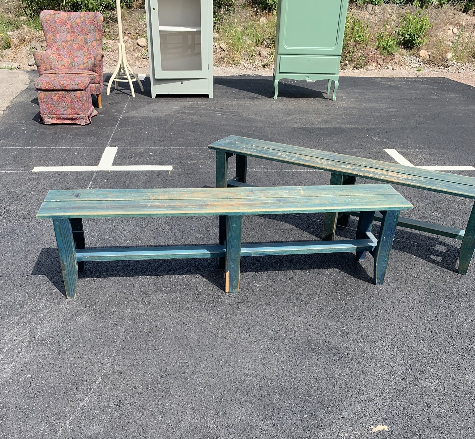 Paret bänkar i trä, 1900-tal.