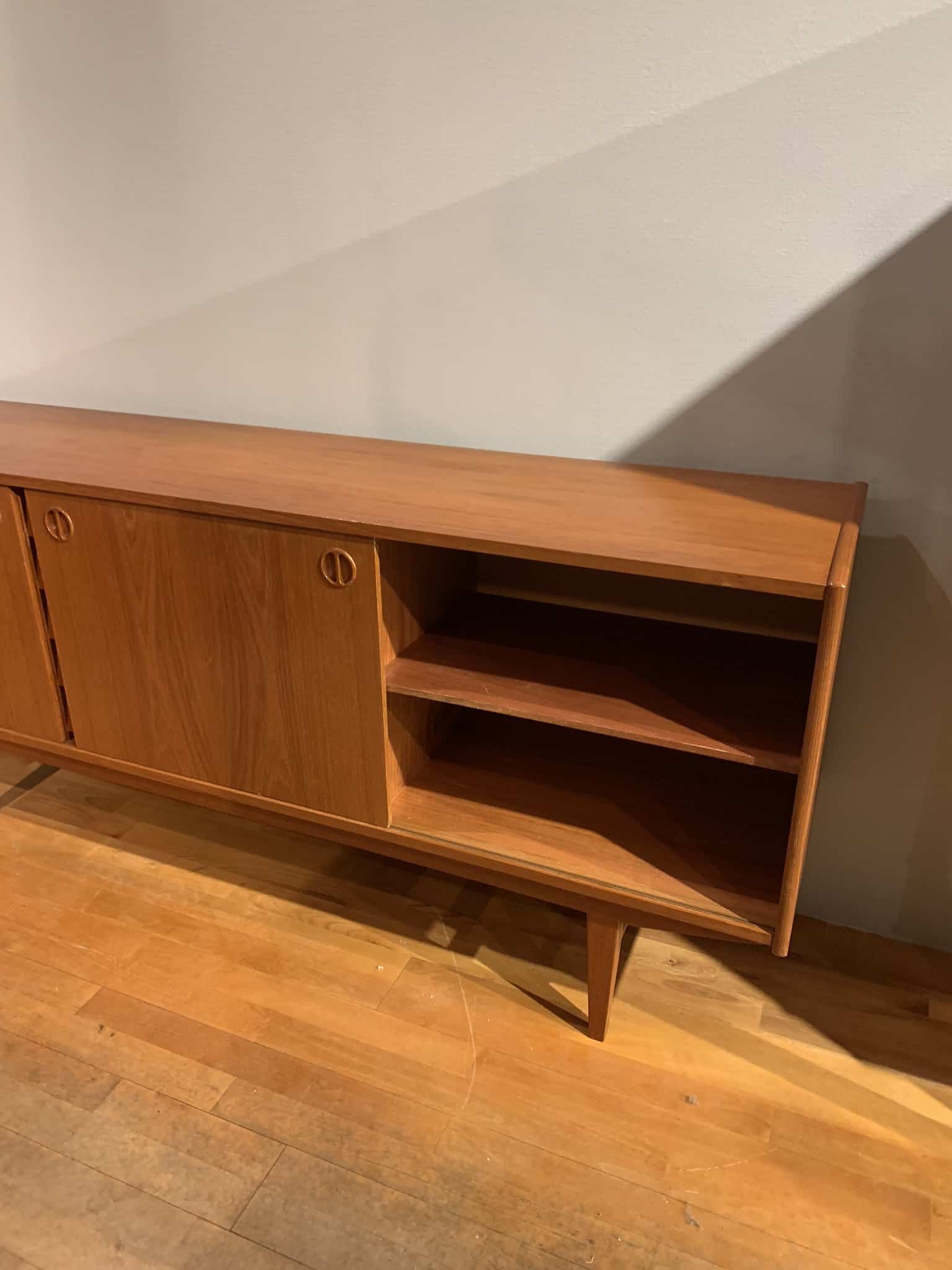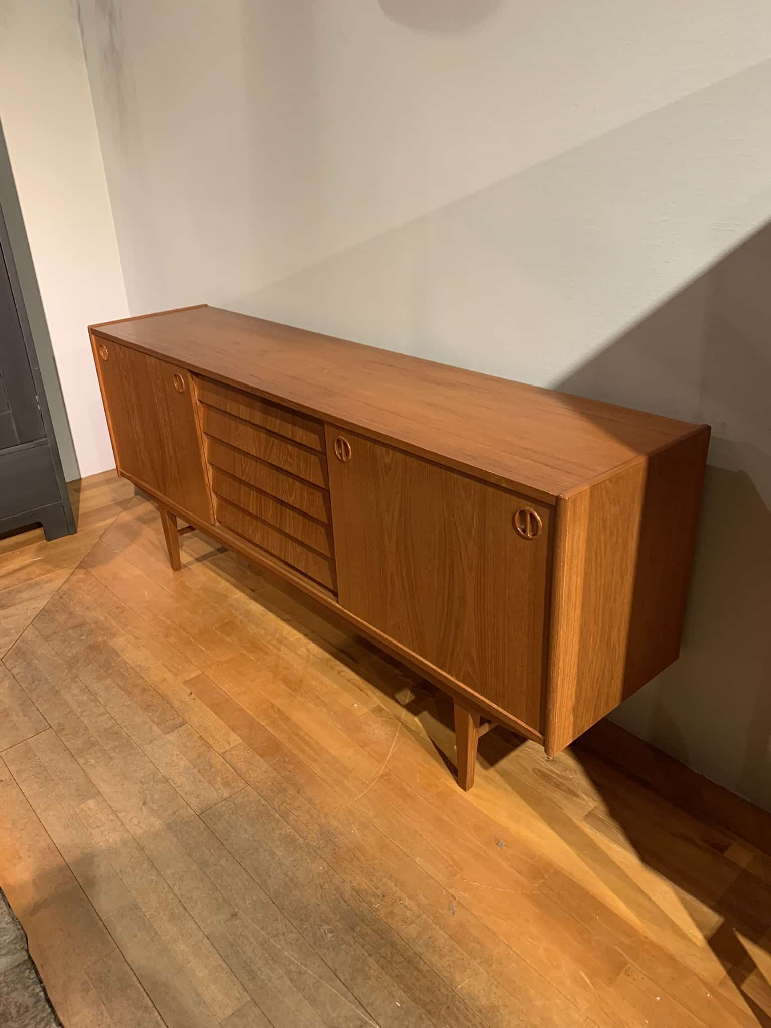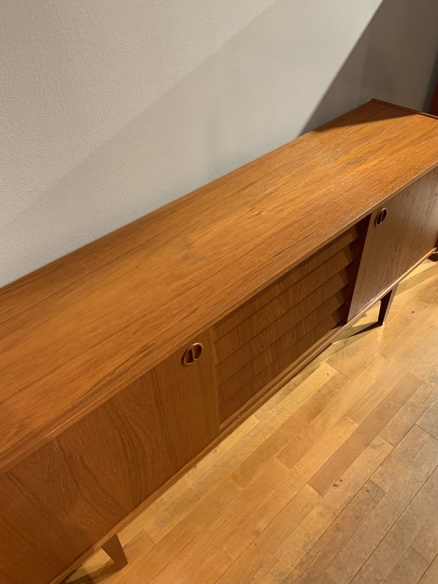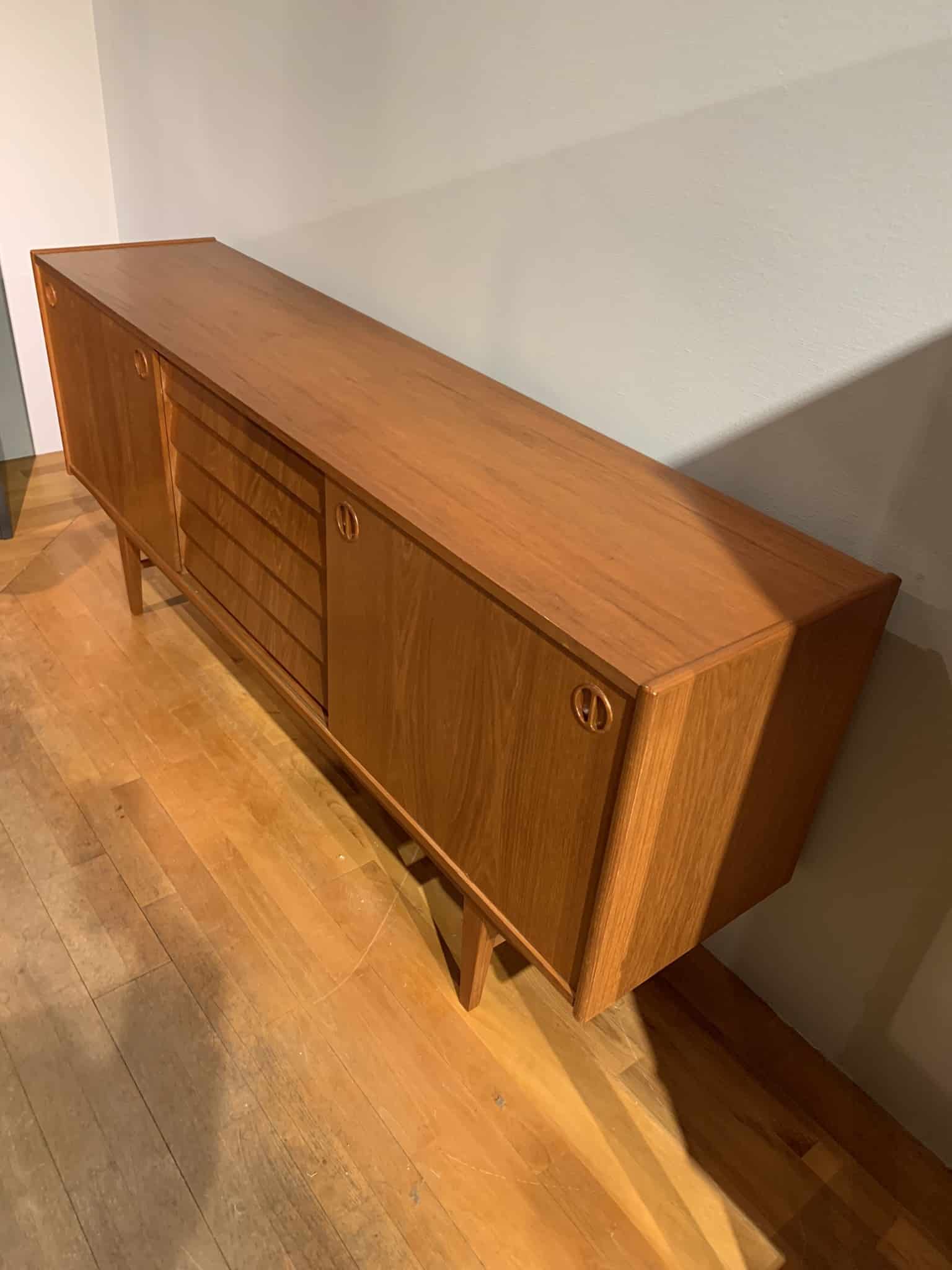 Hyllplan invändigt. Rundade handtag & snedställda lådor.