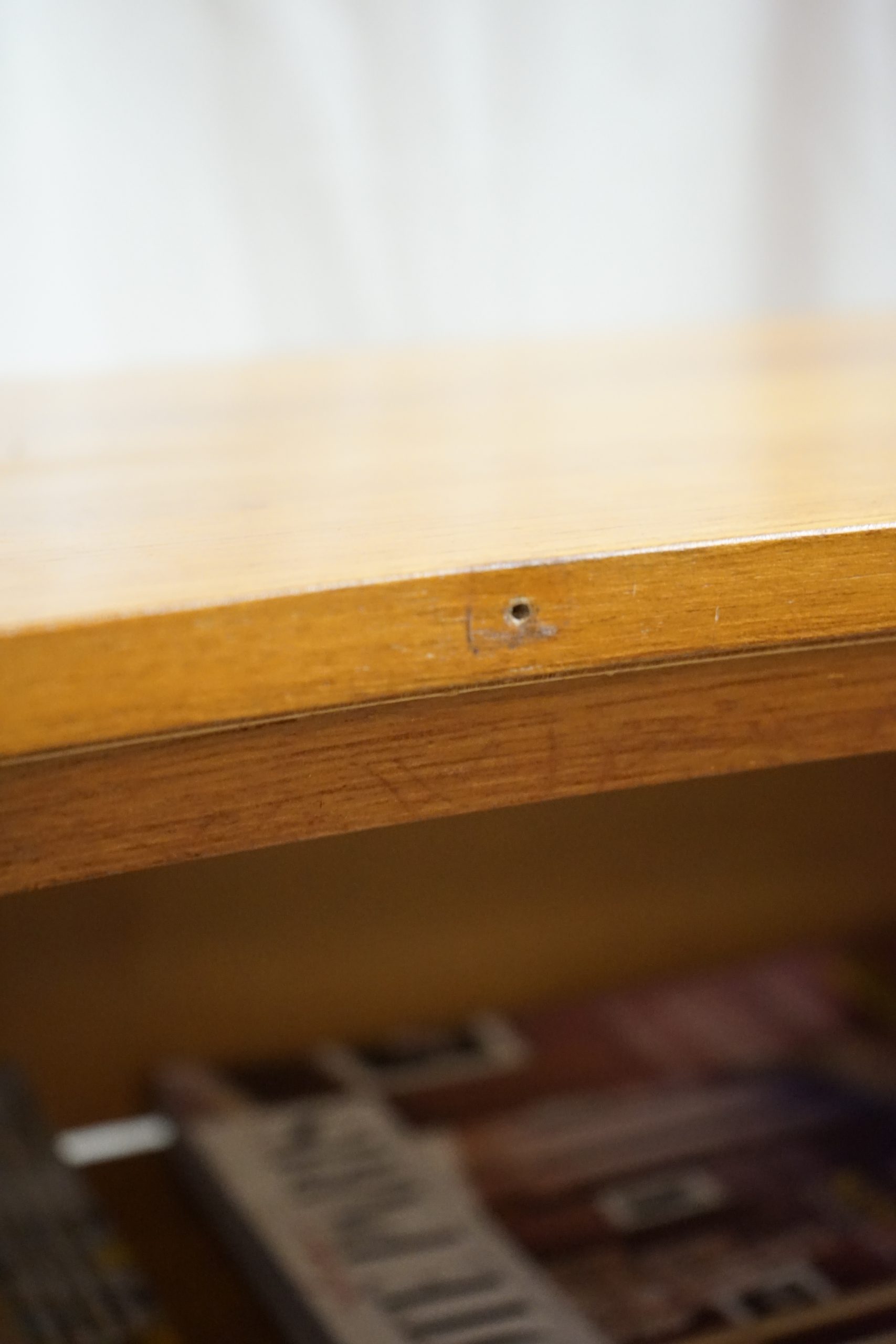I fint vintageskick, tre små spikhål på skivans kant. Bruksspår.