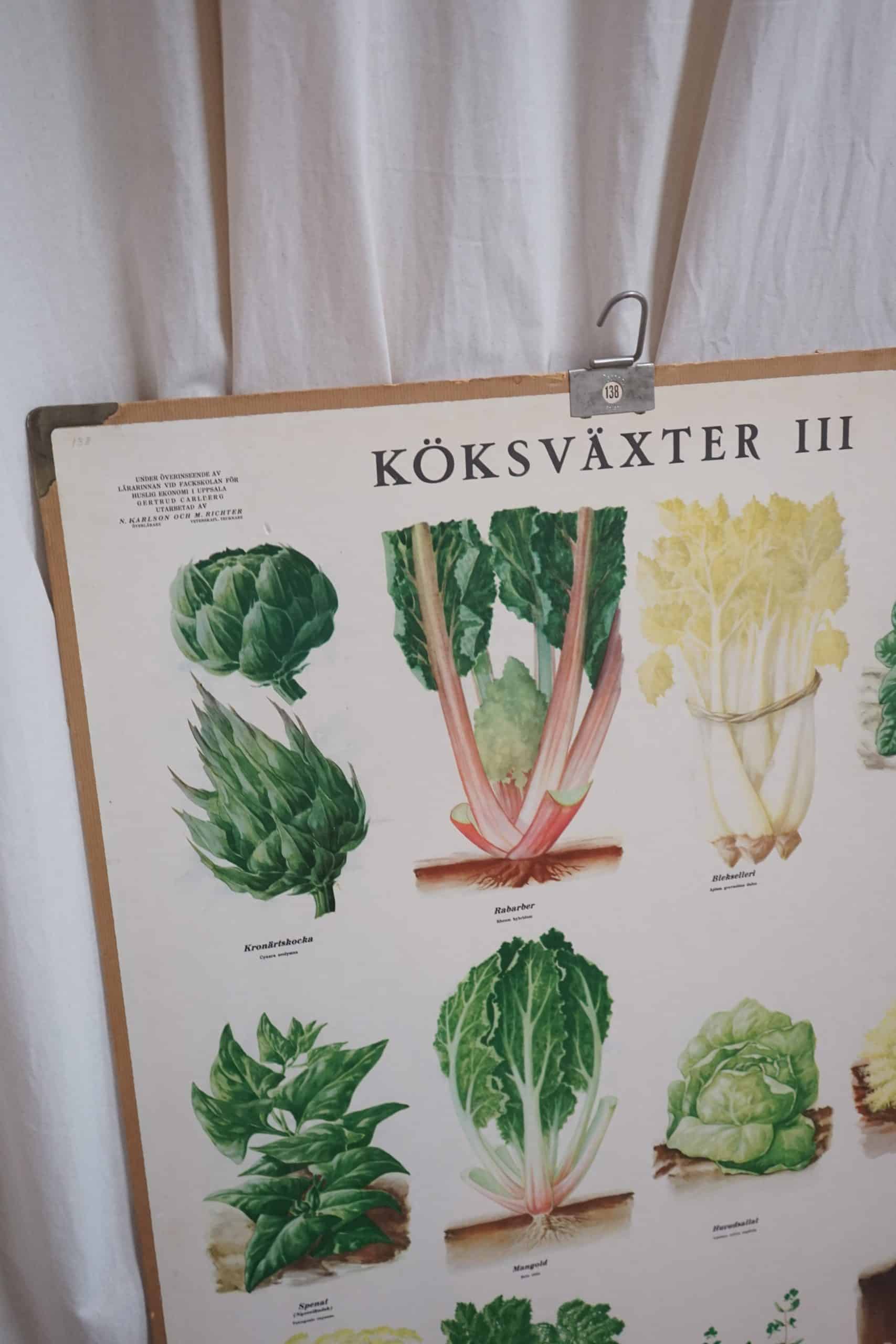 Motiv med bl.a rabarber, mangold, sparris & spenat