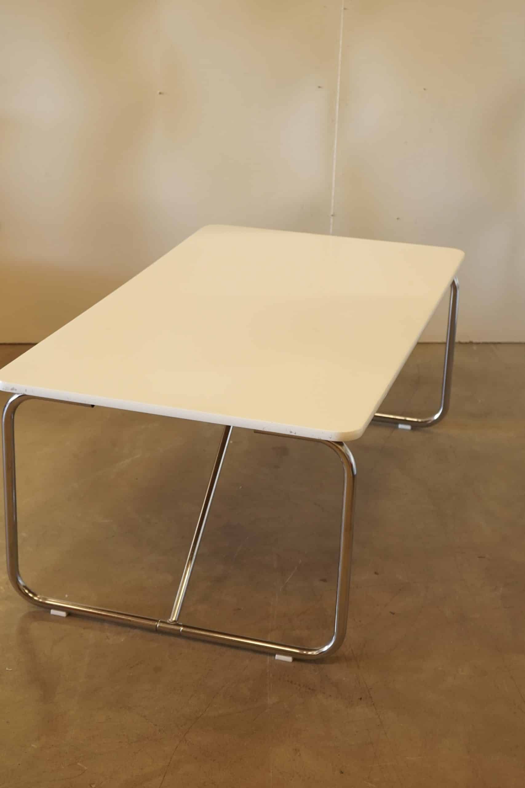 Kromad stålrörsställning, skiva i lackad mdf.
