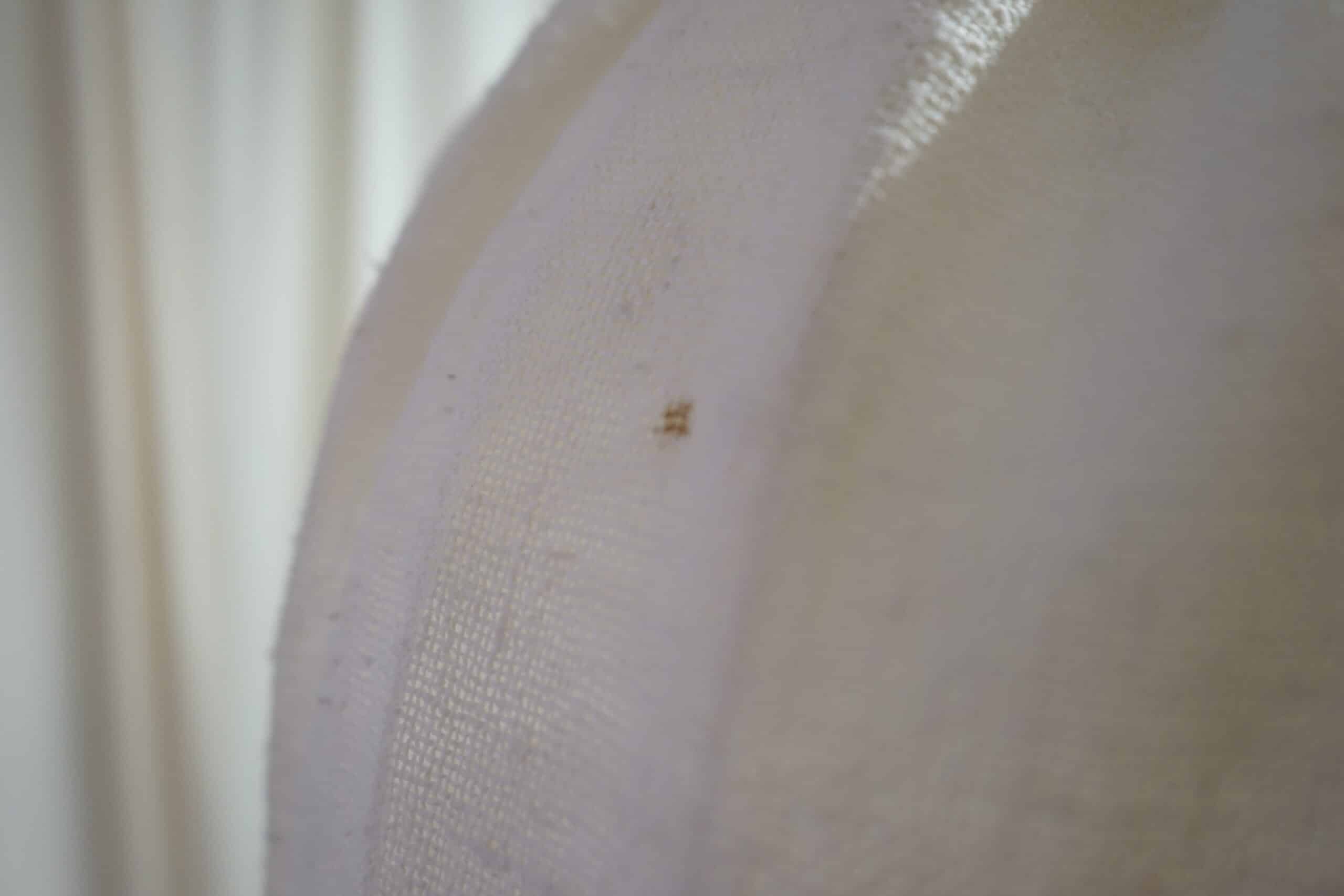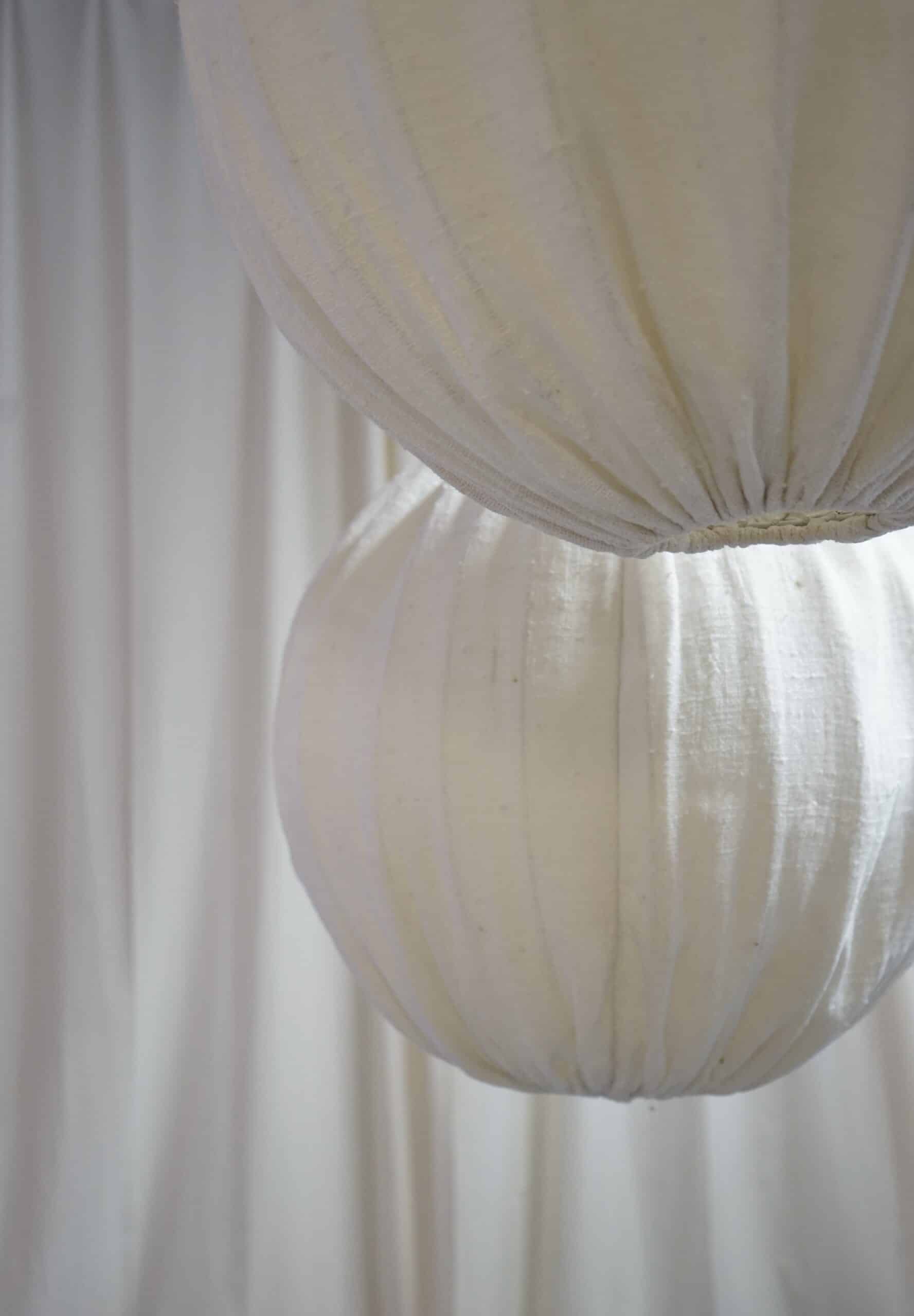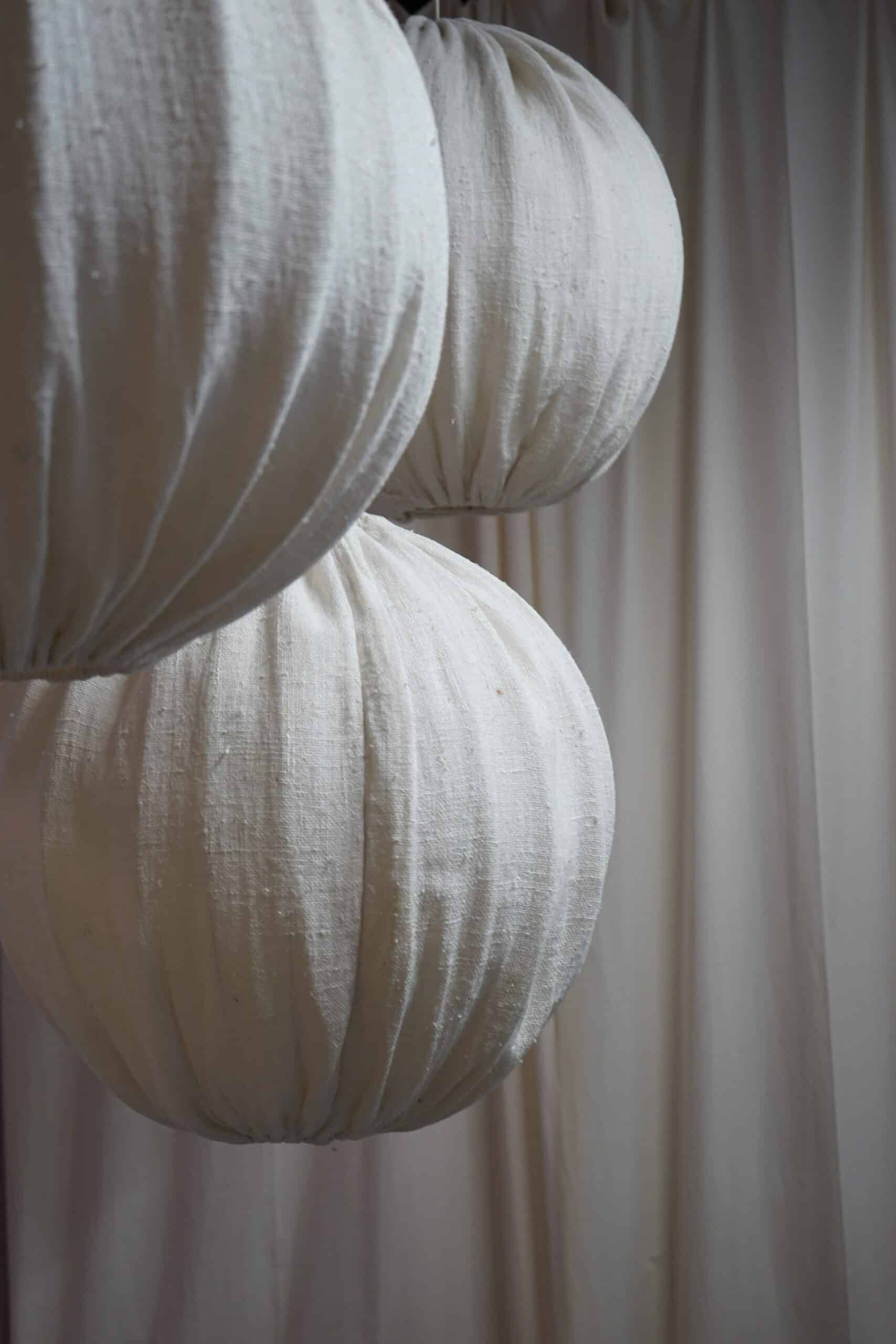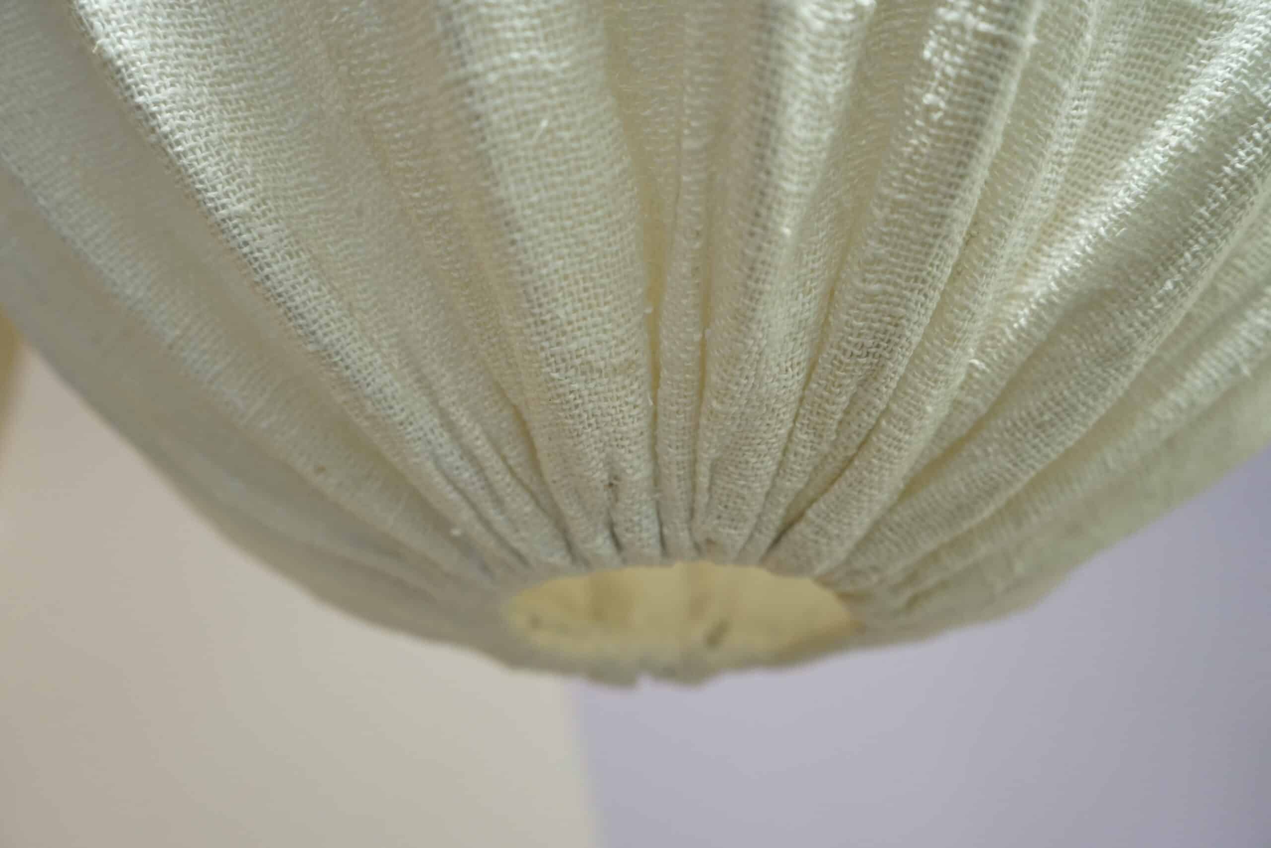 Bollformad, stålram, klädd i ett naturfärgat linnetyg.